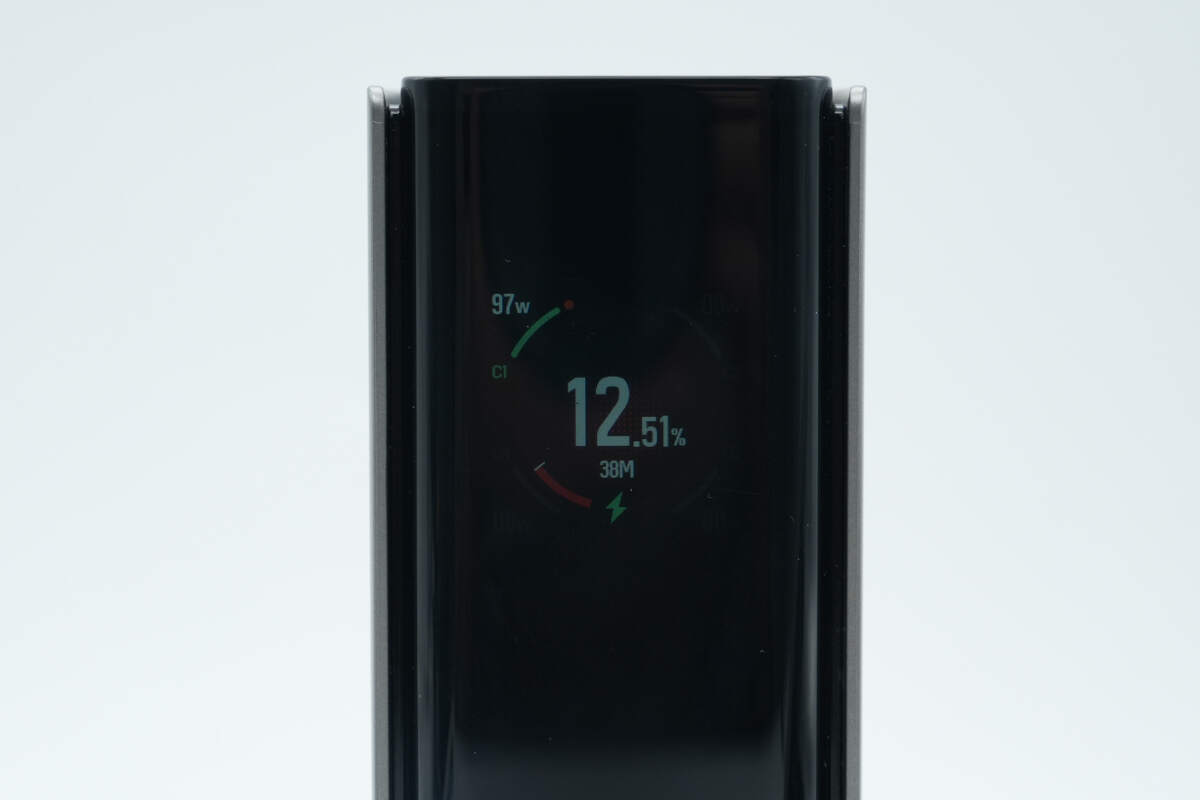 It also shows the remaining battery level, the status of the four USB-C ports, and real-time input and output power.