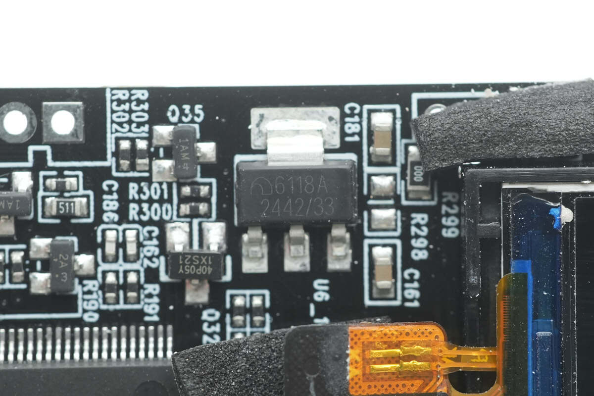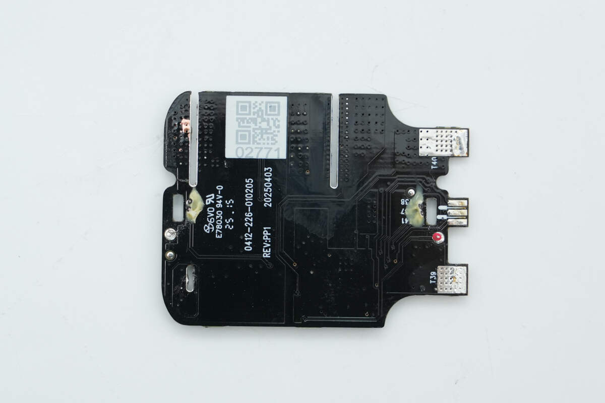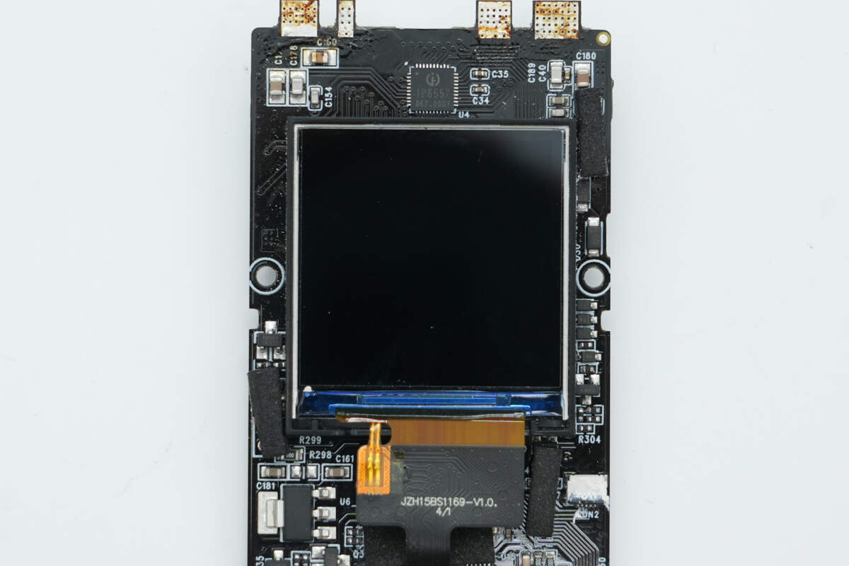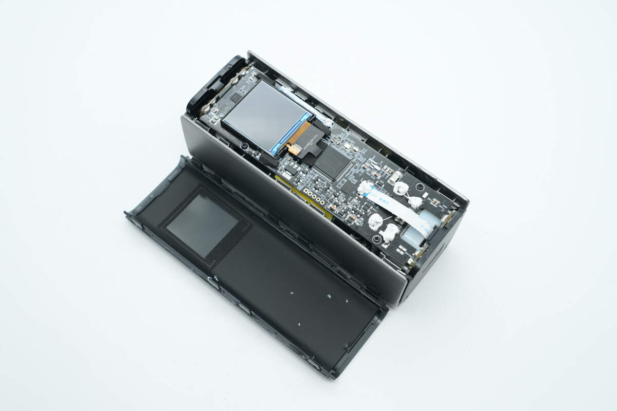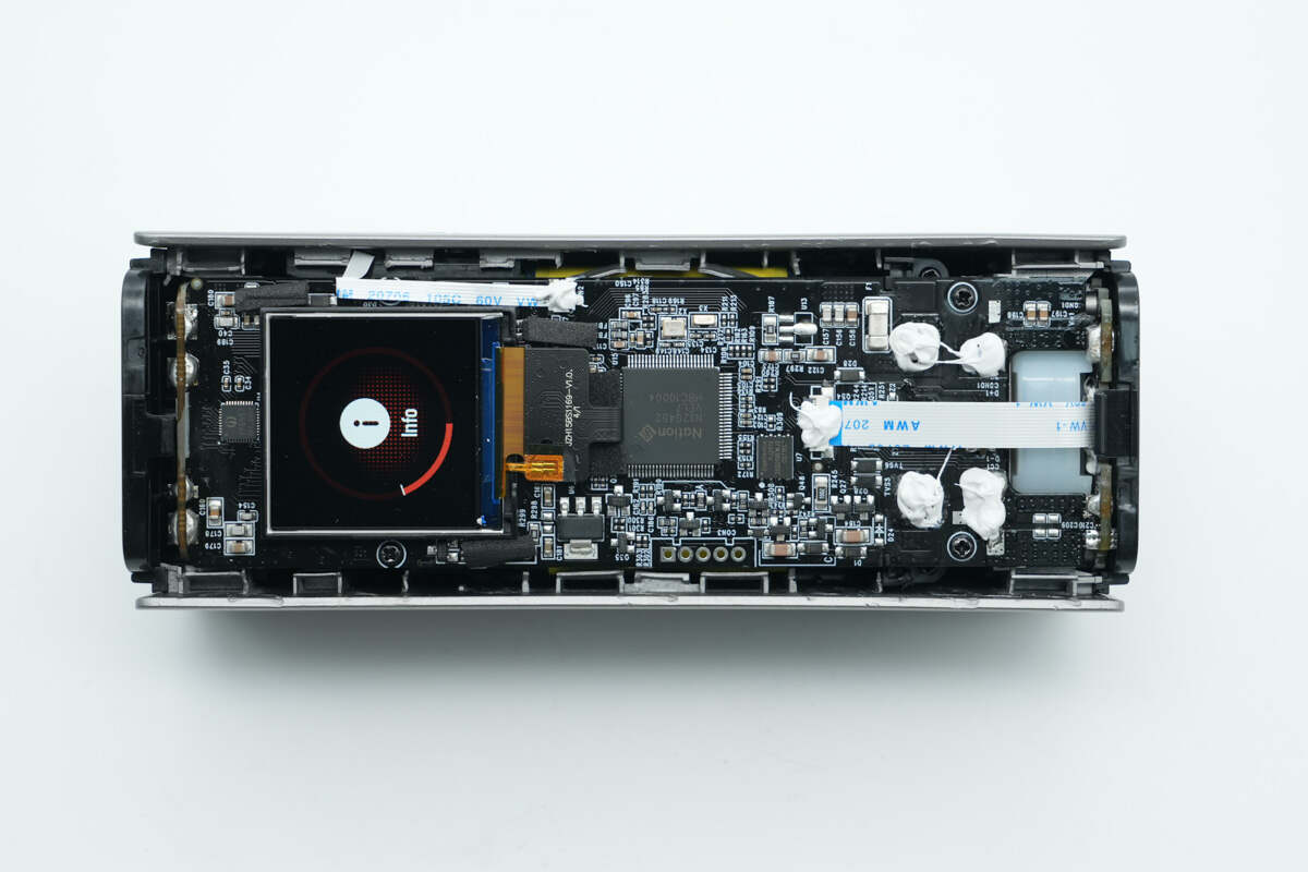 Separate the two PCBs. The top PCB features an MCU, memory, LDO voltage regulator, and a buck-boost SOC for the USB-C3 and USB-C4 ports. The display is connected to the PCB via a ribbon cable.
