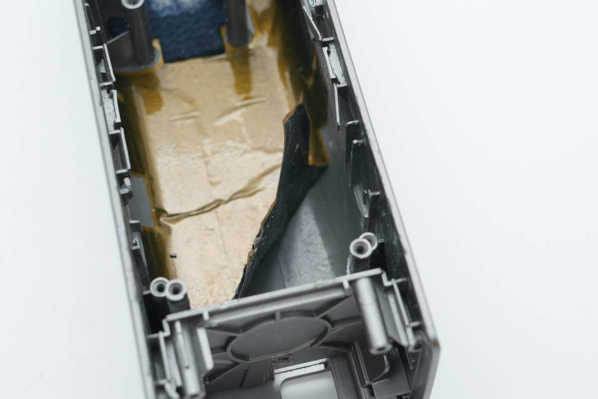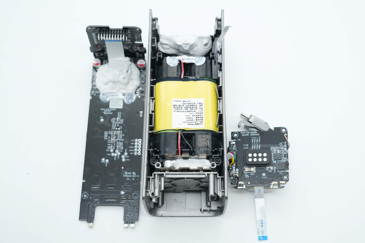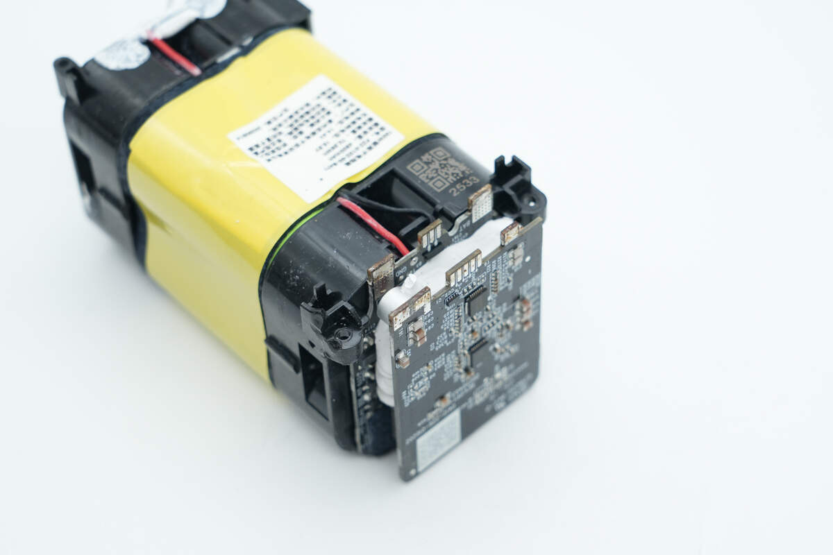 Remove the screws on both ends to take out the PCBA module, revealing the battery pack underneath.