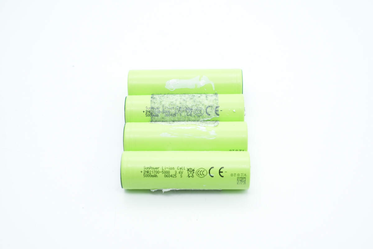 Disassemble the battery pack. It consists of four 21700 lithium-ion cells with the same part number.