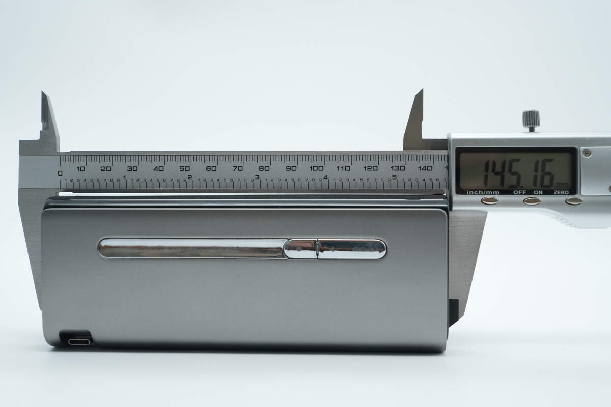 The length of the power bank is about 145.16 mm (5.71 inches).