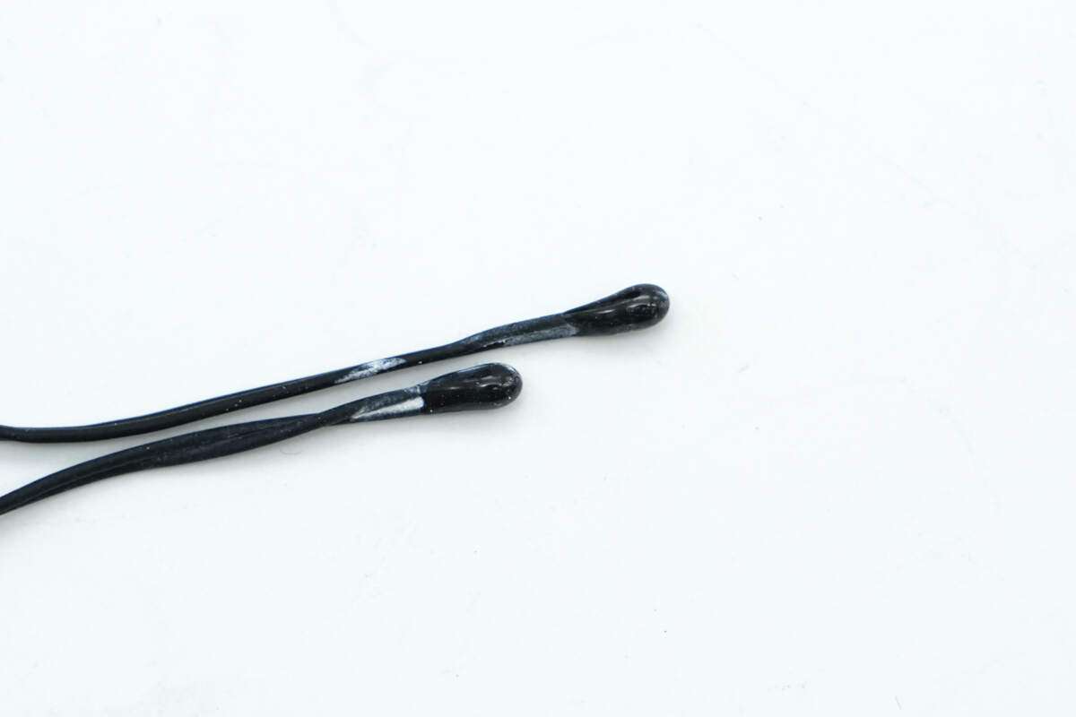 The other end connects to two PCBs, with white adhesive filling the gap between them.