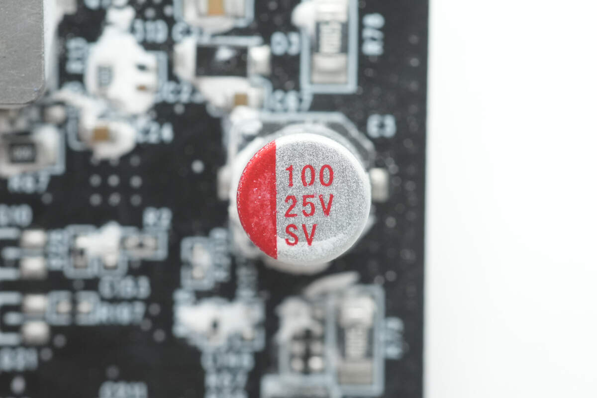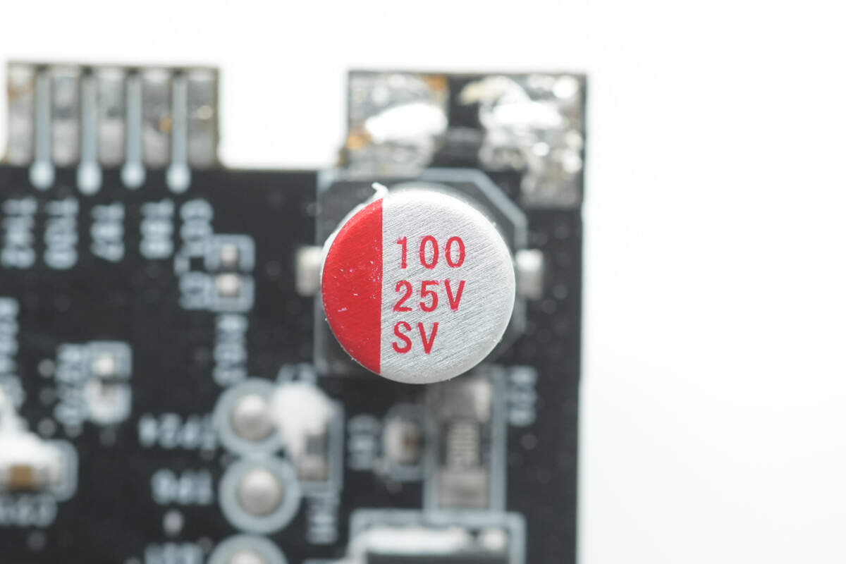 The bidirectional buck-boost charging and discharging control circuit for USB-C2 is designed on a separate PCB. On the front, two solid capacitors are reinforced with adhesive.