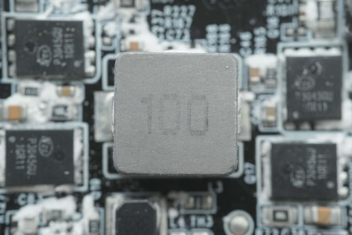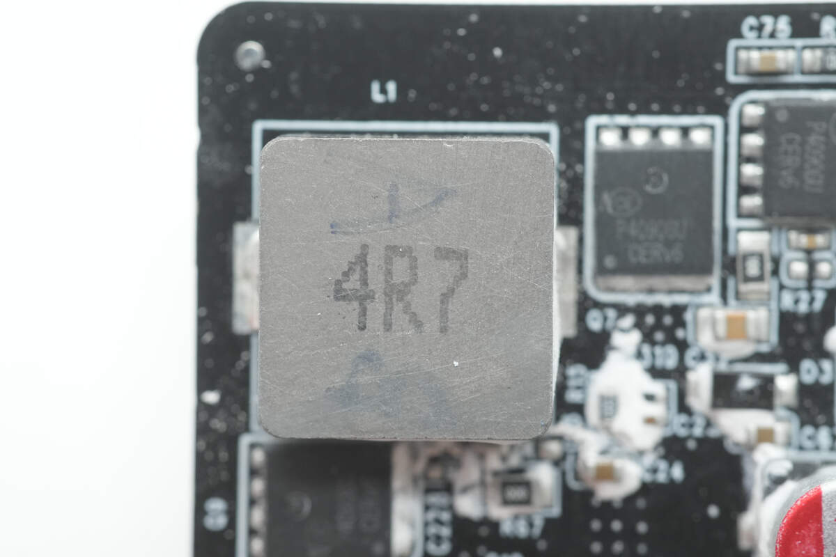 Close-up of the 4.7μH buck-boost inductor used in the design.