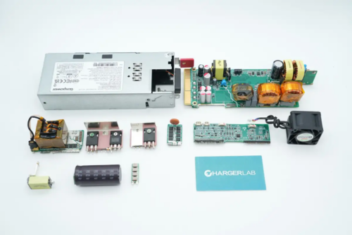 After taking it apart, we found that it adopts two STMicro STM32F334R8T6 MCUs used for both boost and LLC control. The boost MOSFETs are NCE NCEP025F90T, driven by Infineon 2EDN7524F driver, and use Sanan SDS120J010C2 SiC diodes for rectification. The LLC MOSFETs are STMicro STW48N60DM2, driven by NOVOSENSE NSi6801BD isolated drivers.