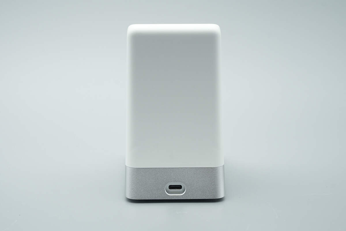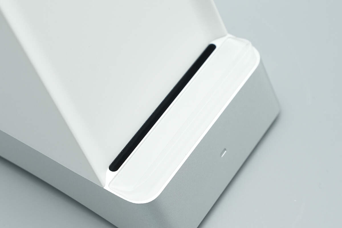 The charger is made of PC and metal materials. The metal frame of the base features a painted finish for a refined appearance.