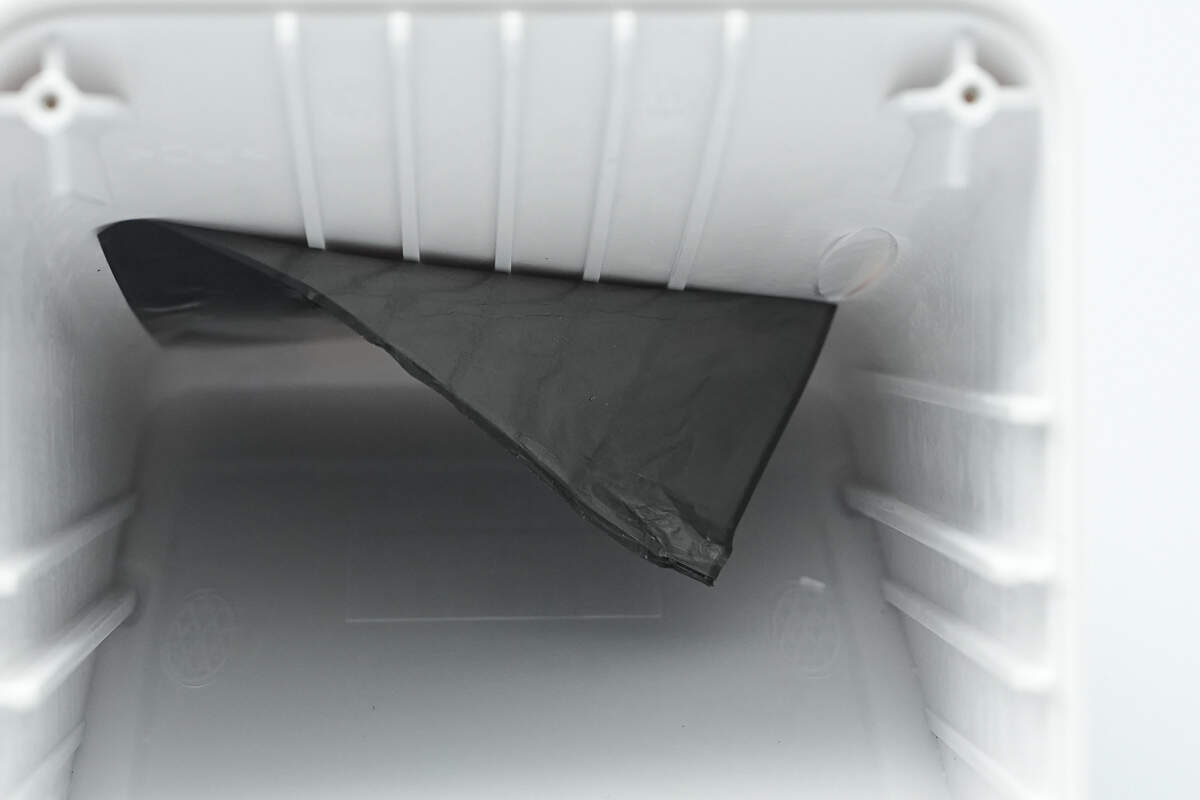 After removing the fan, a plastic partition is revealed in the area previously covered by the fan, along with protective foam padding.