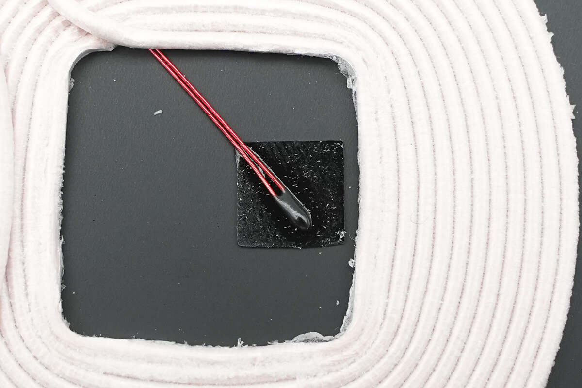 Capacitors, inductors, and other components are reinforced with adhesive. A metal heat sink is installed on the back of the coil, and the casing is lined with a thermal pad. Thermistors monitor the temperature in real time, ensuring both effective heat dissipation and safe operation.
