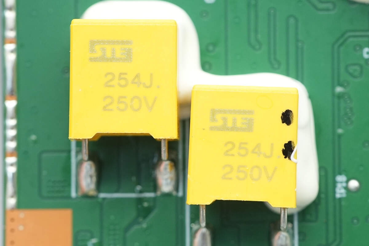 The two resonant capacitors are from STE, each with a specification of 0.25 μF, 250 V.