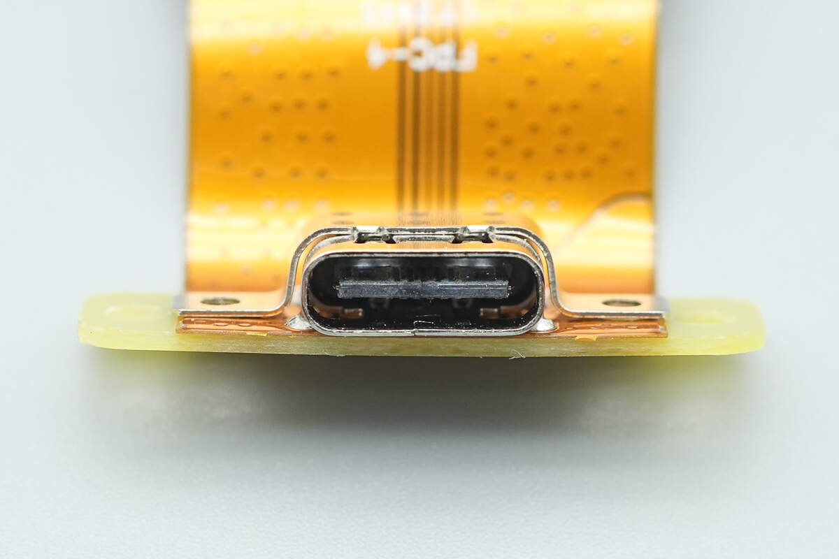 The metal casing of the USB-C socket is spot-welded for reinforcement.