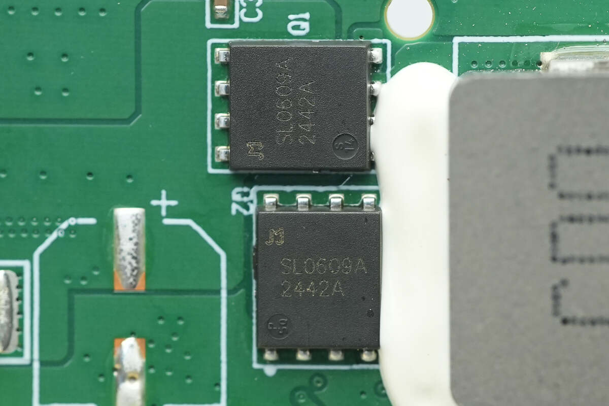 The synchronous boost MOSFETs are from JJWD, model JMSL0609AG. They are NMOS devices with a voltage rating of 60 V and an on-resistance of 5 mΩ, packaged in a PDFN 5 × 6‑8L form factor.