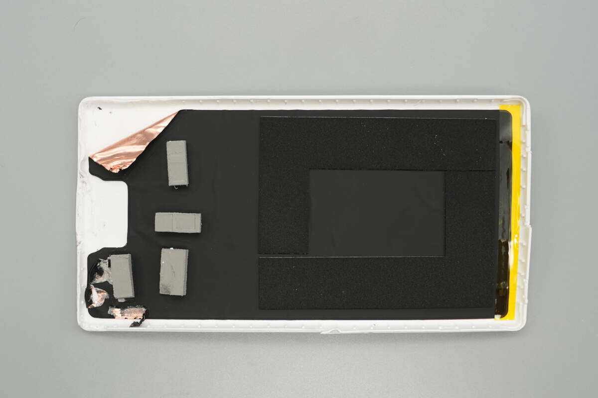 The other half of the casing, corresponding to the PCB area, is lined with graphite thermal tape.
