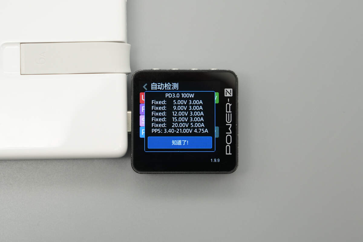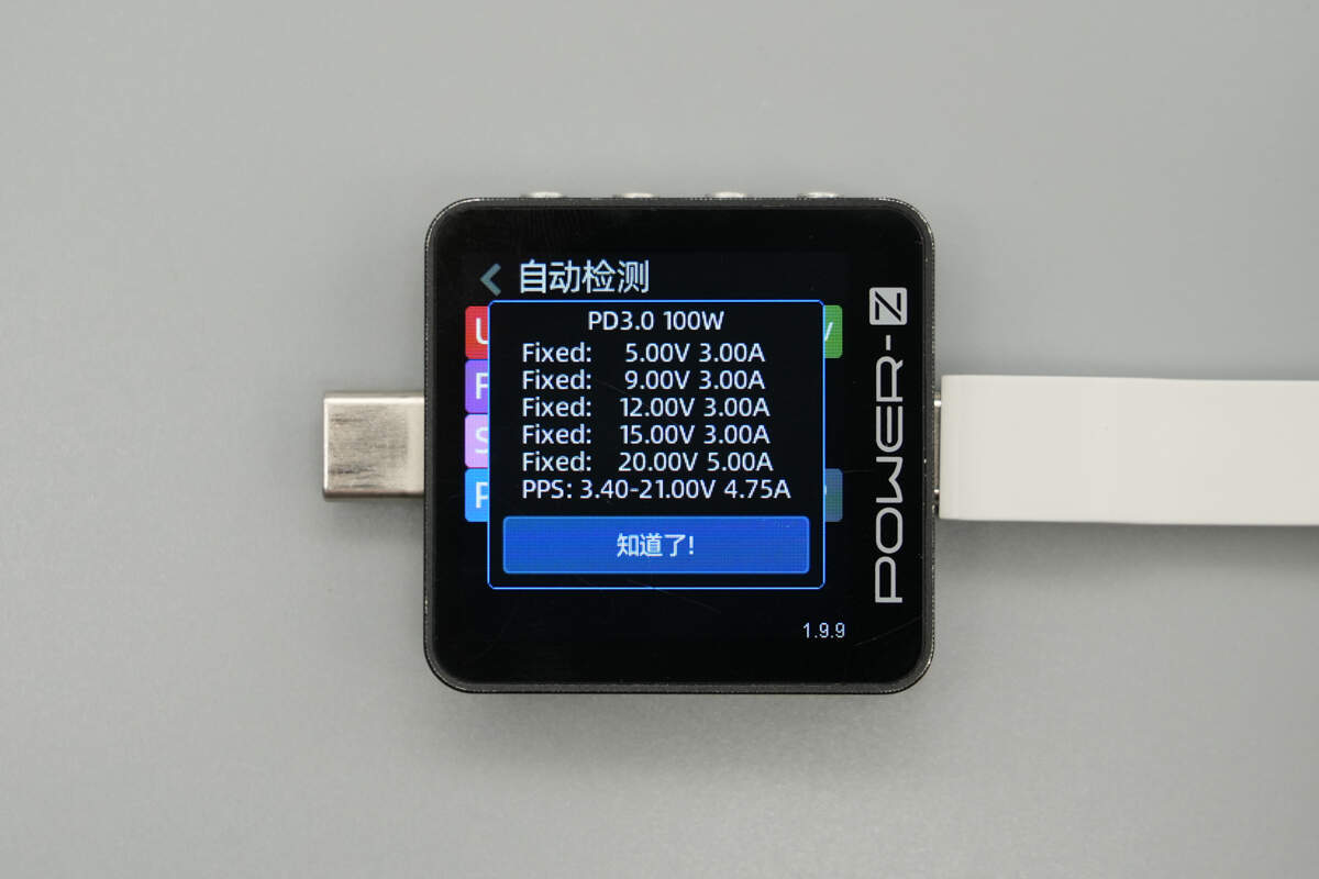 And it has five fixed PDOs of 5V3A, 9V3A, 12V3A, 15V3A, and 20V5A. It has one set of PPS, which is 3.4-21V4.75A.