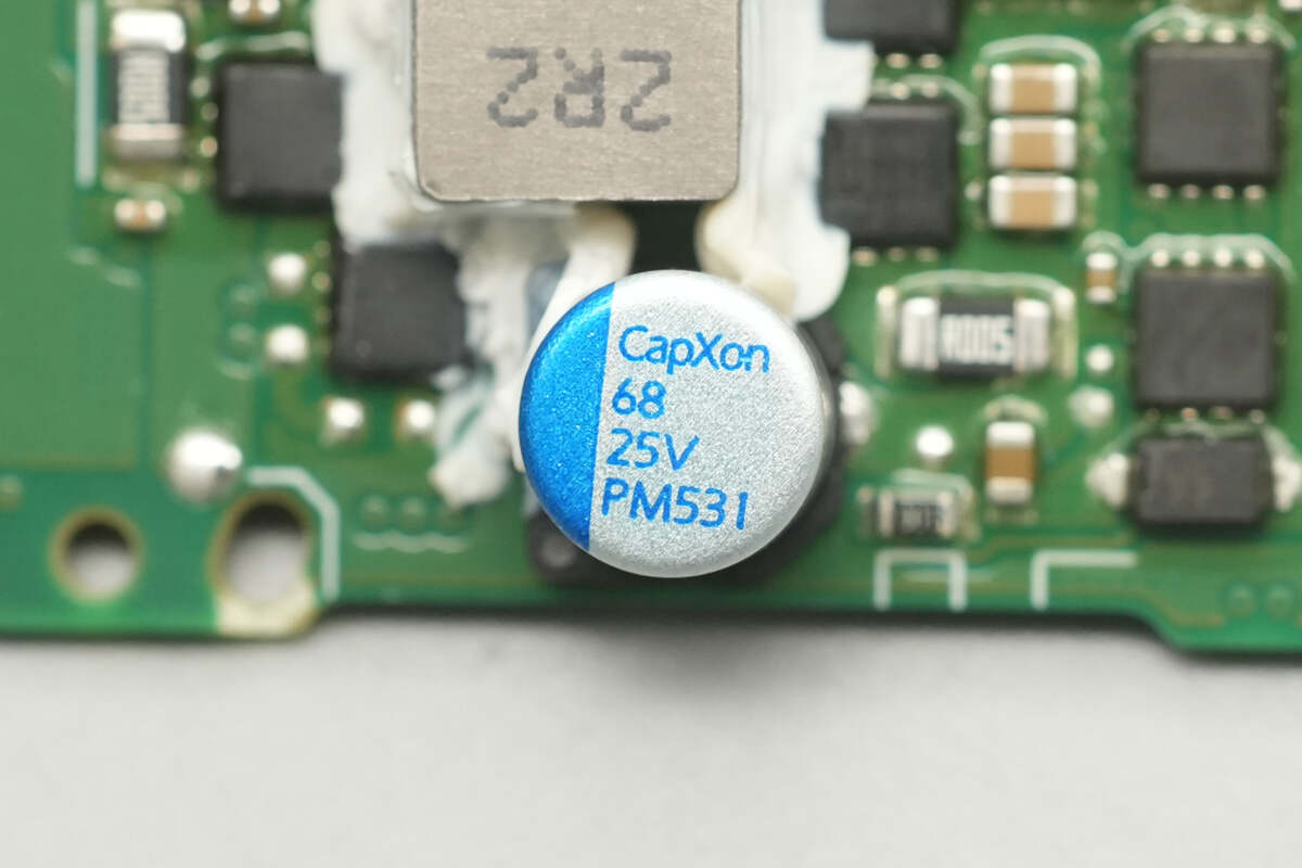 The solid capacitor is also from CapXon, rated at 25 V and 68 μF.