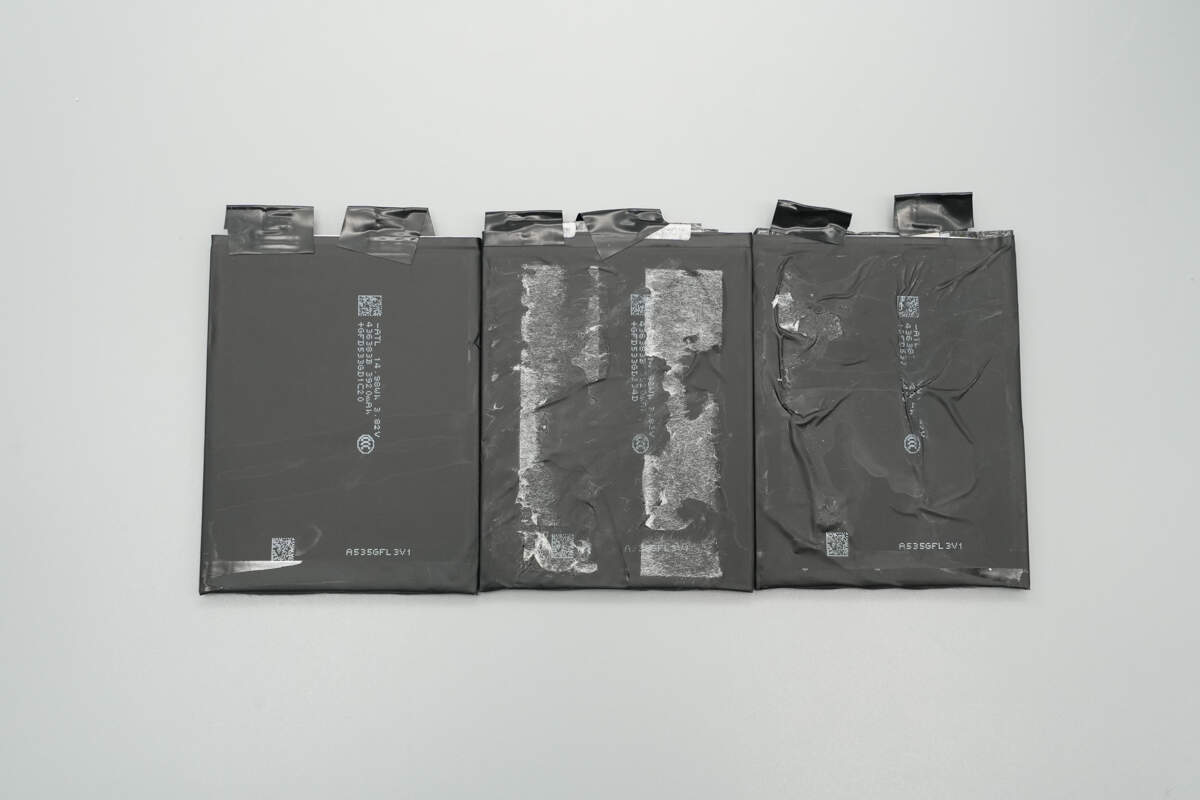 Remove the white plastic plate. The battery cells are connected to the PCB via nickel strips spot welding.