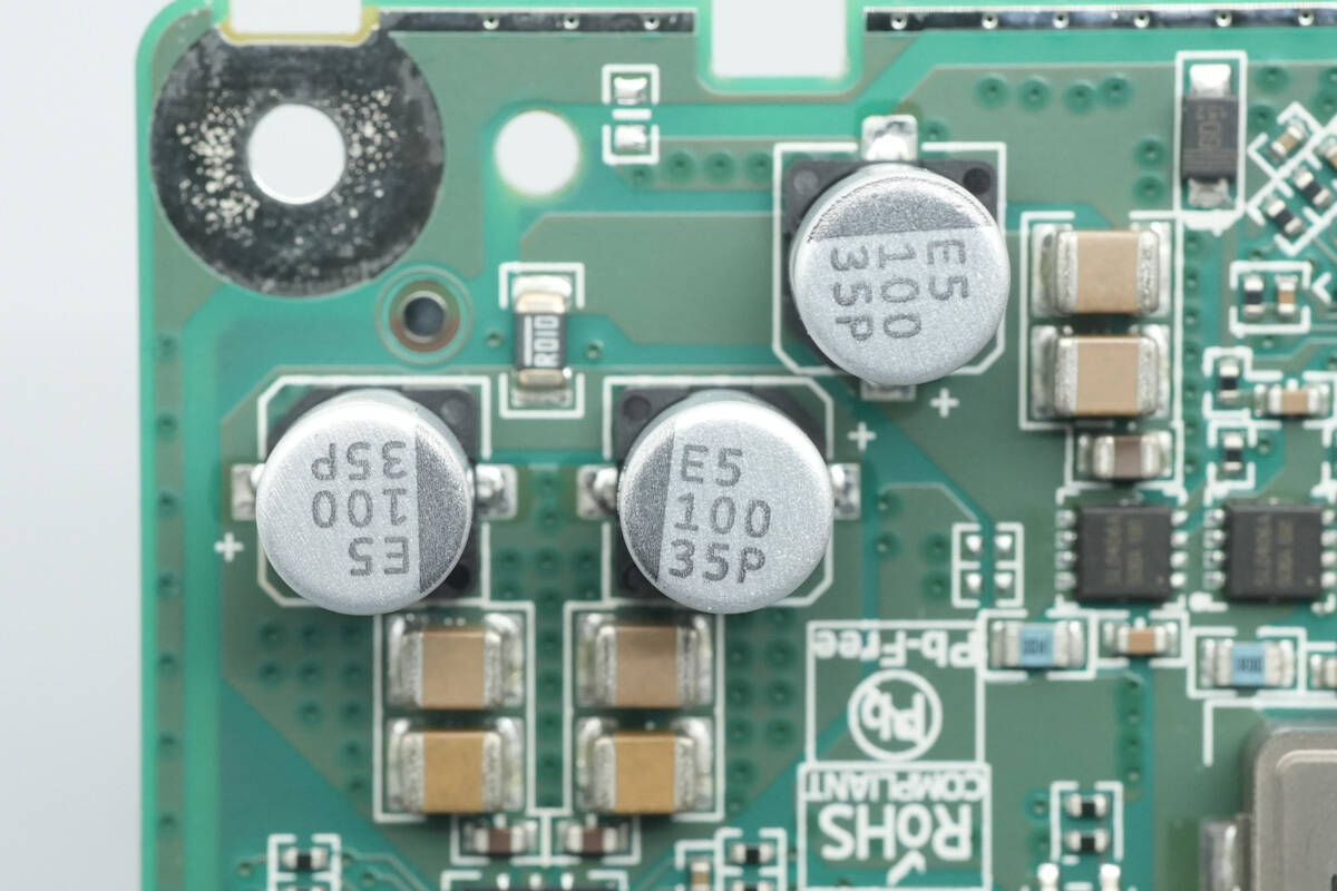 Three 100 μF, 35 V capacitors are used for output filtering.