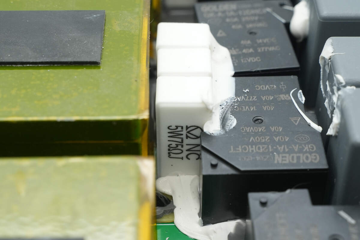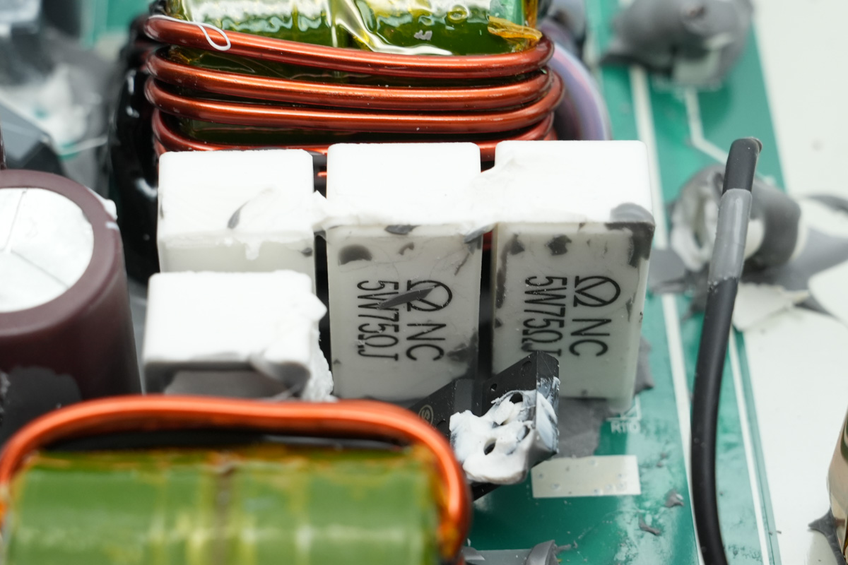 Four discharge resistors are connected in series, with a specification of 5W 75Ω.