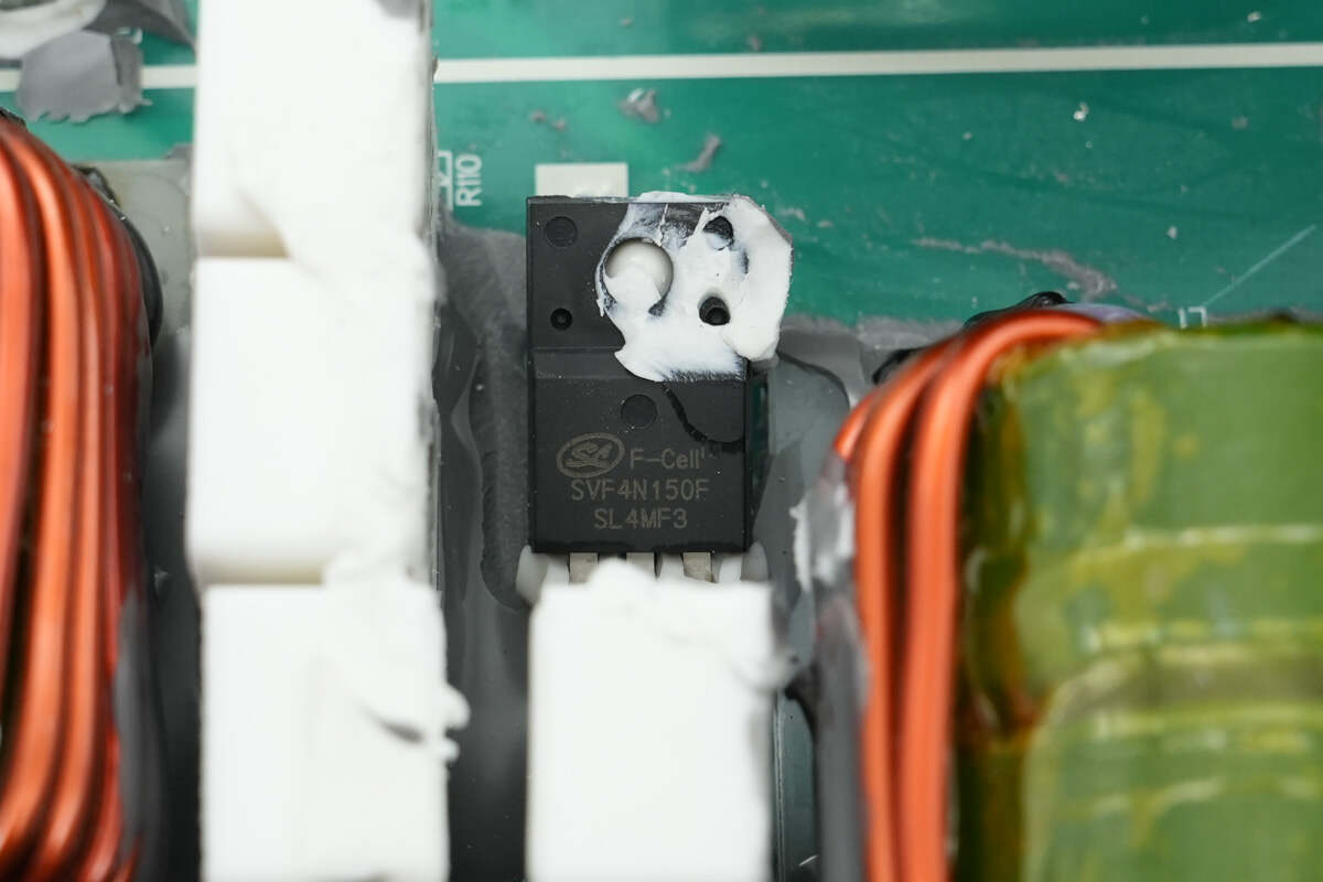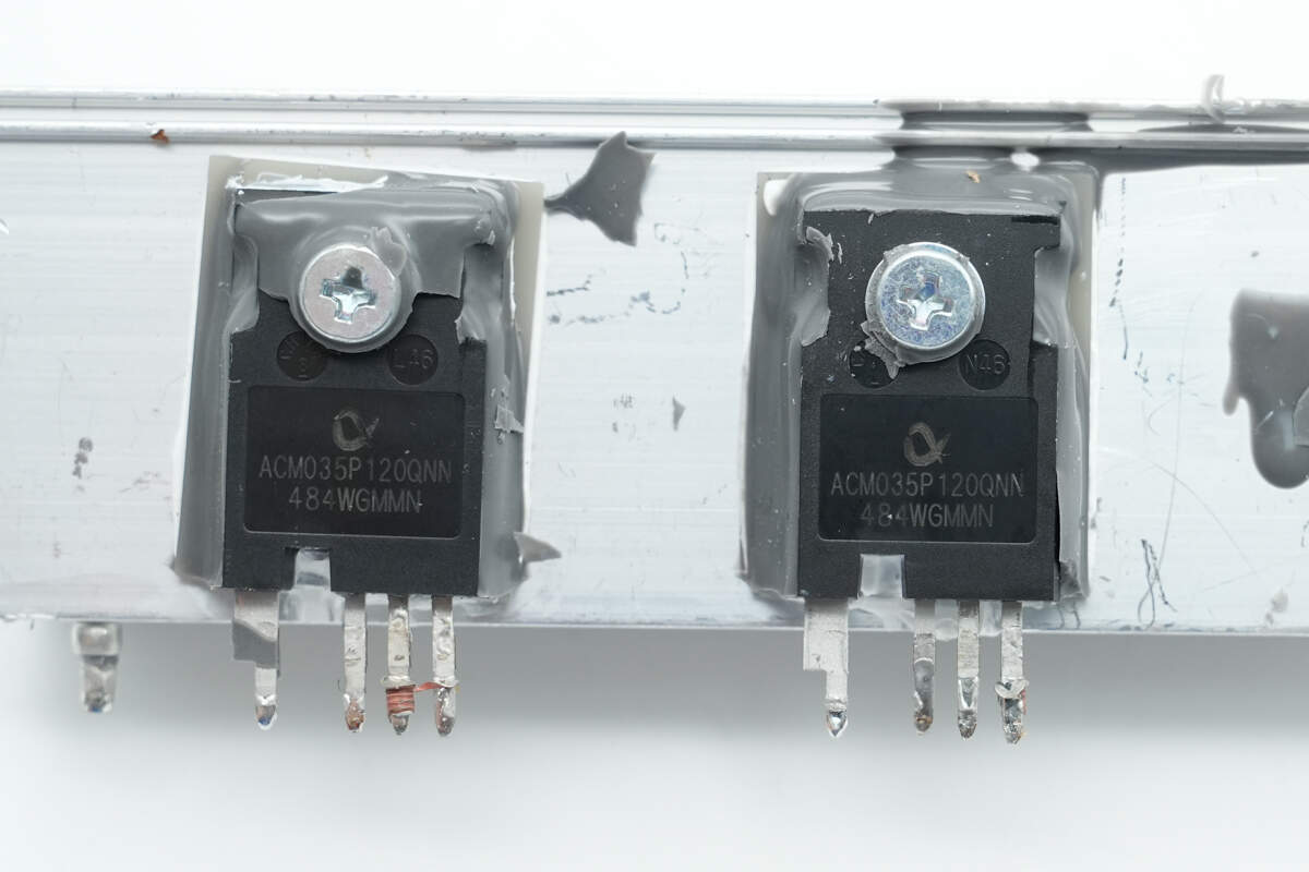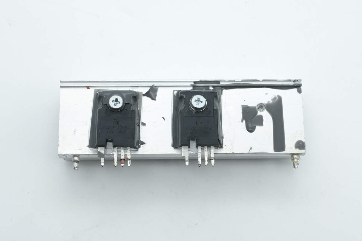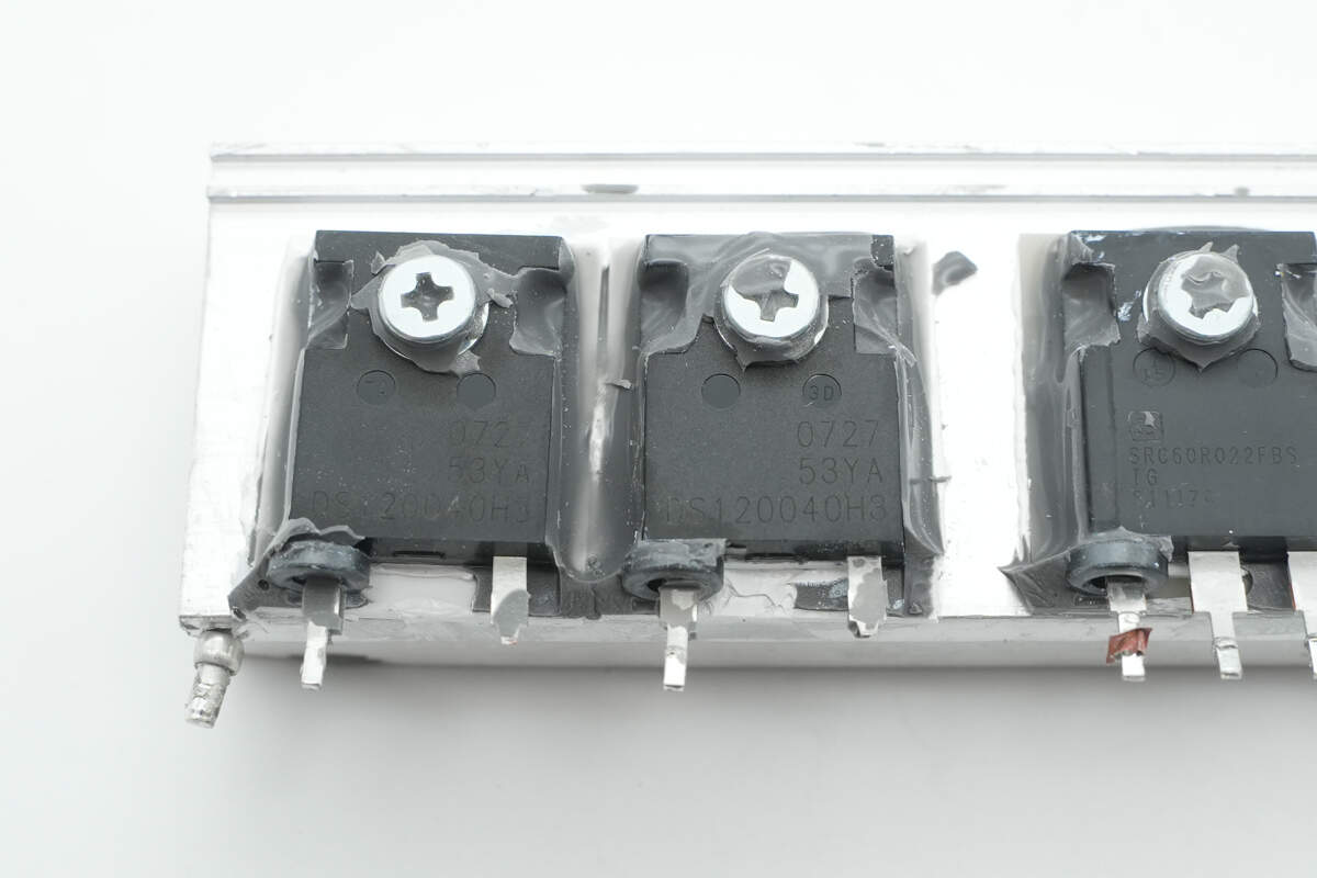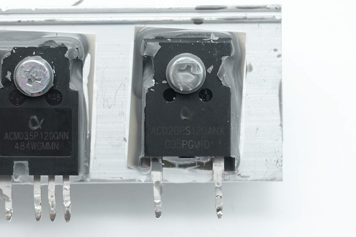 The other heatsink front side is equipped with two LLC MOSFETs and one SiC diode.