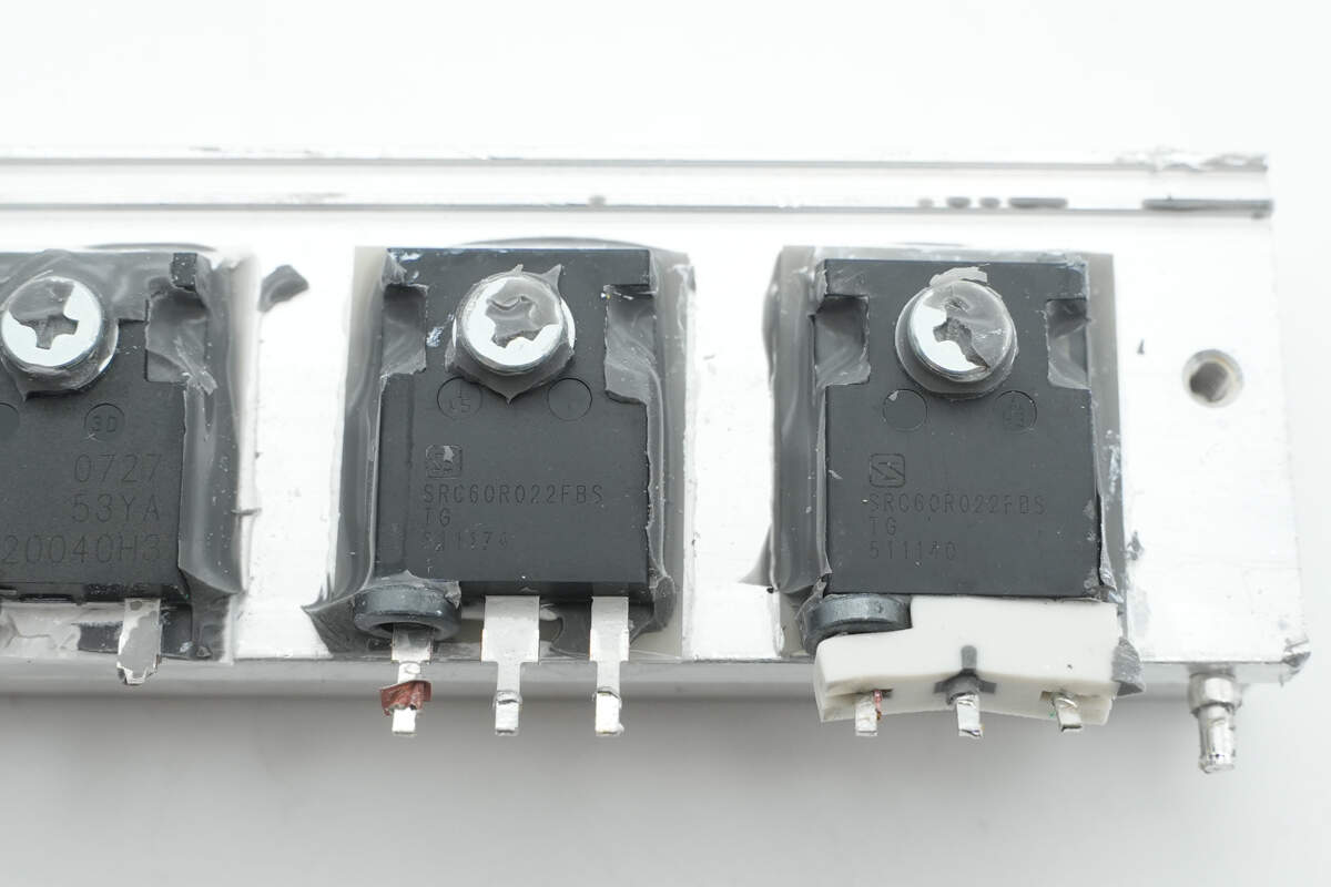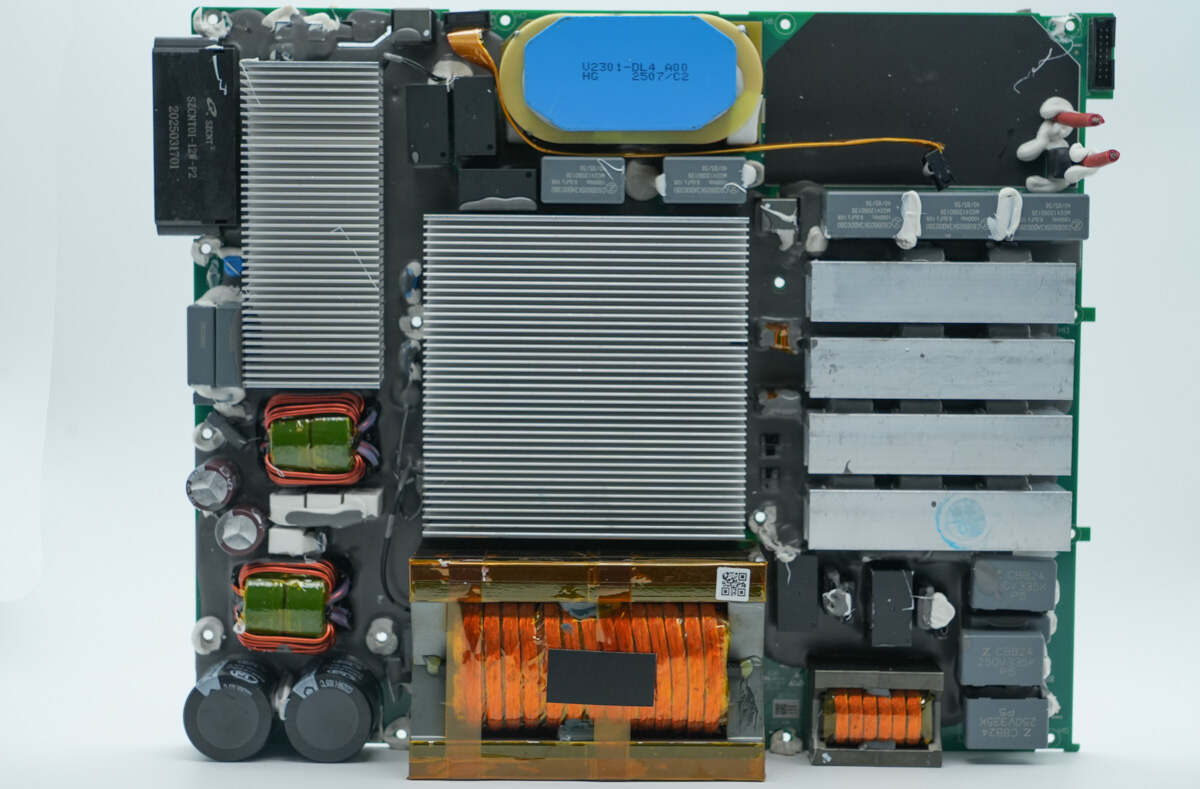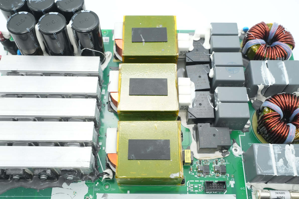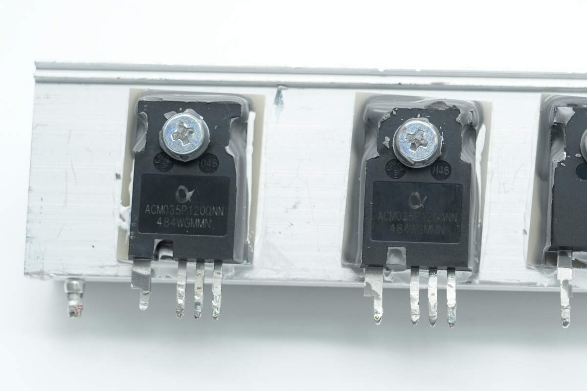 The other heatsink front side is equipped with two LLC MOSFETs and one SiC diode.