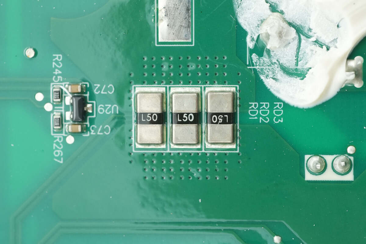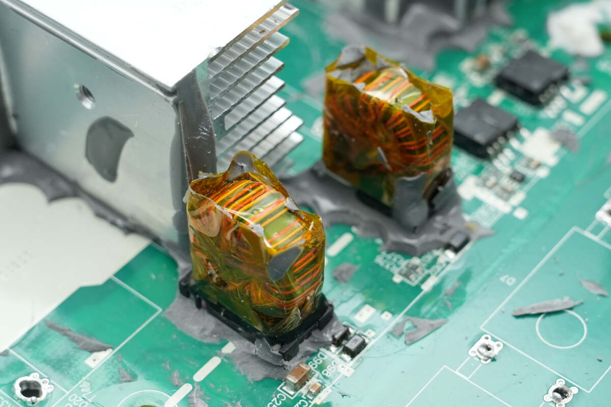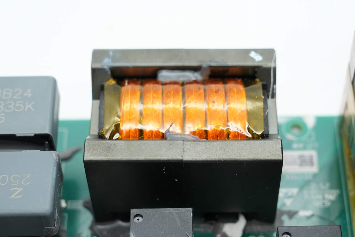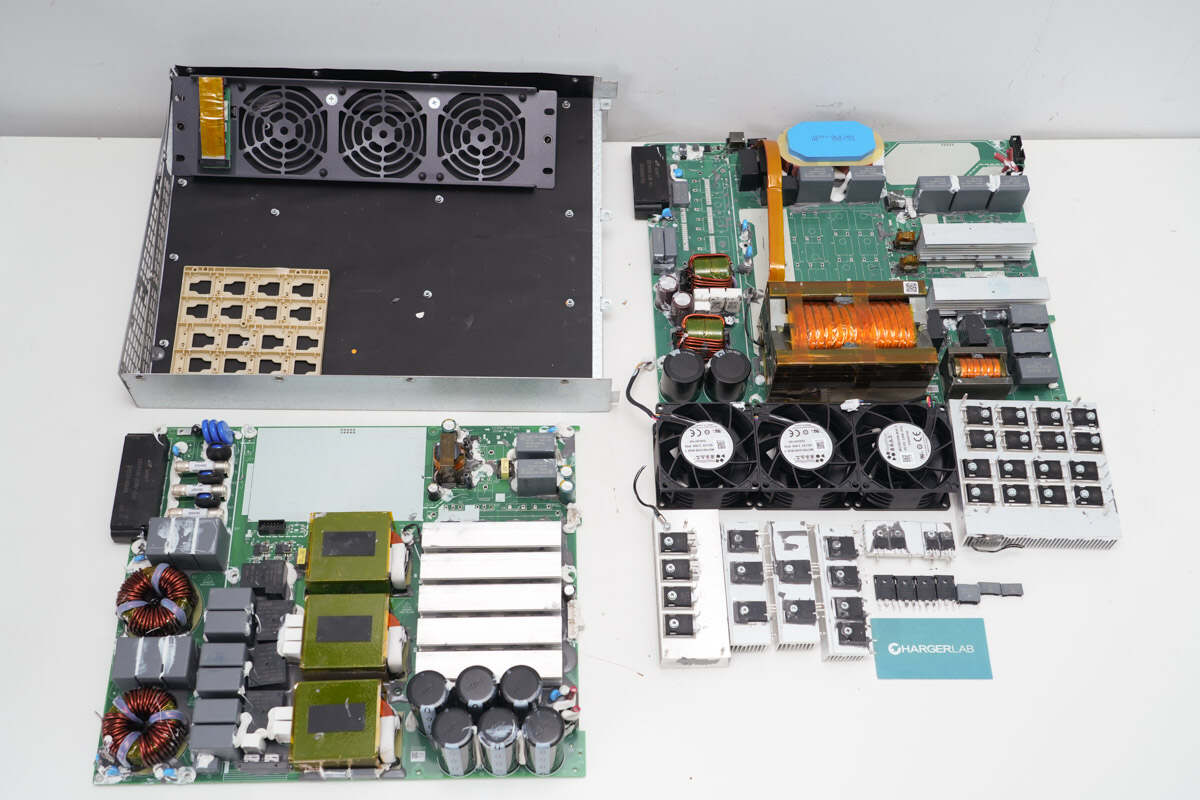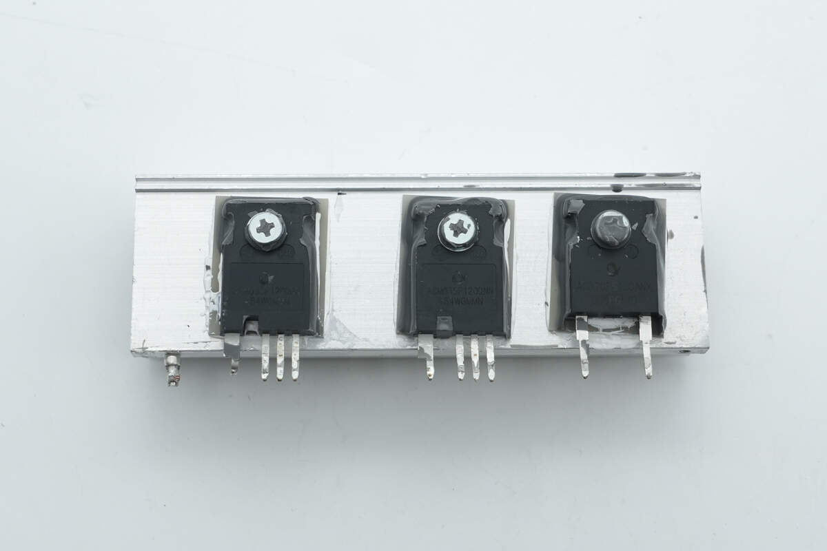 The other heatsink front side is equipped with two LLC MOSFETs and one SiC diode.