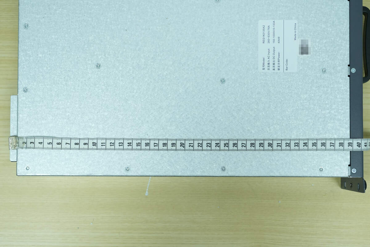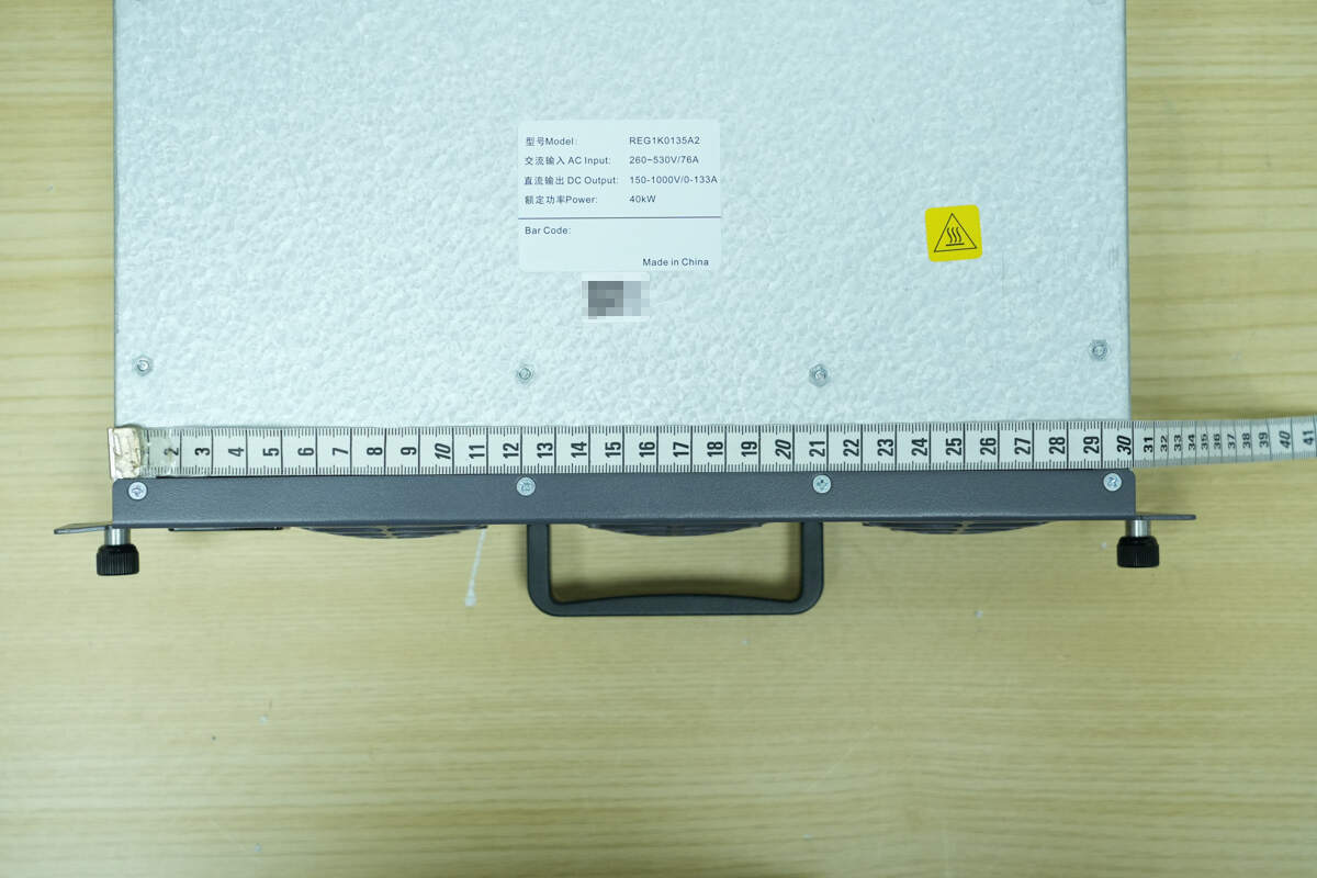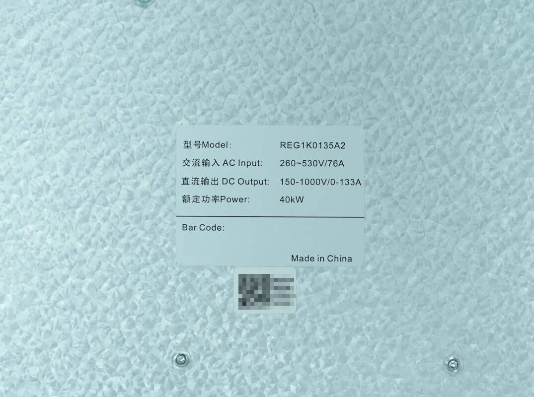 We obtained the Infypower REG1K0135A2 new energy vehicle charging module. The unit features a metal enclosure assembled with screws and a front-mounted information label. It operates with a three-phase AC input, supporting an input voltage range of 260–530 V, and delivers a DC output voltage of 150–1000 V with an output current of 133 A. The rated output power is 40 kW, making it suitable for 800 V platform electric vehicles.