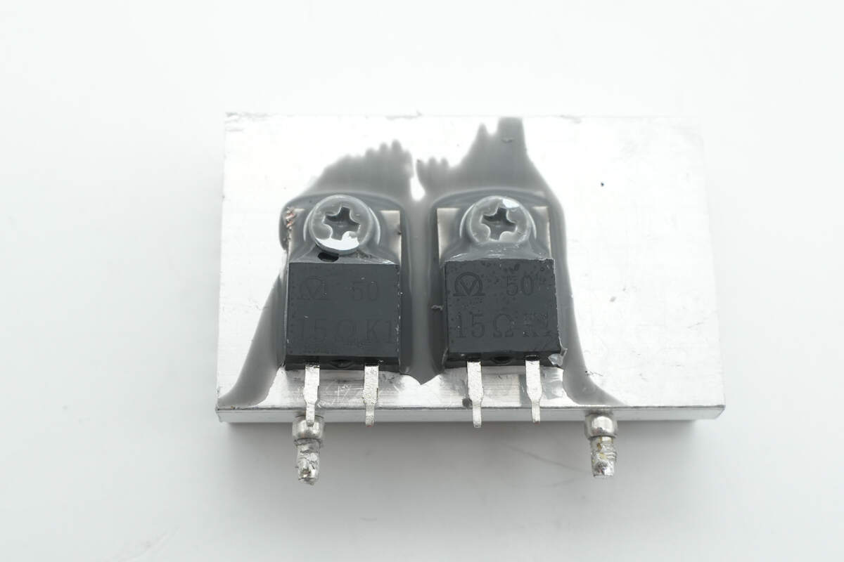These two resistors are supplied by Yongxing. They are RMG10 power-type encapsulated resistors, each rated at 15 Ω and housed in a TO-220 package.