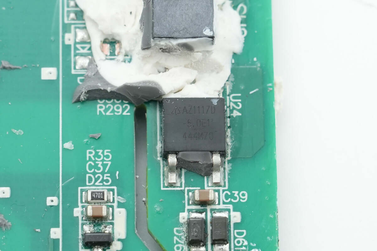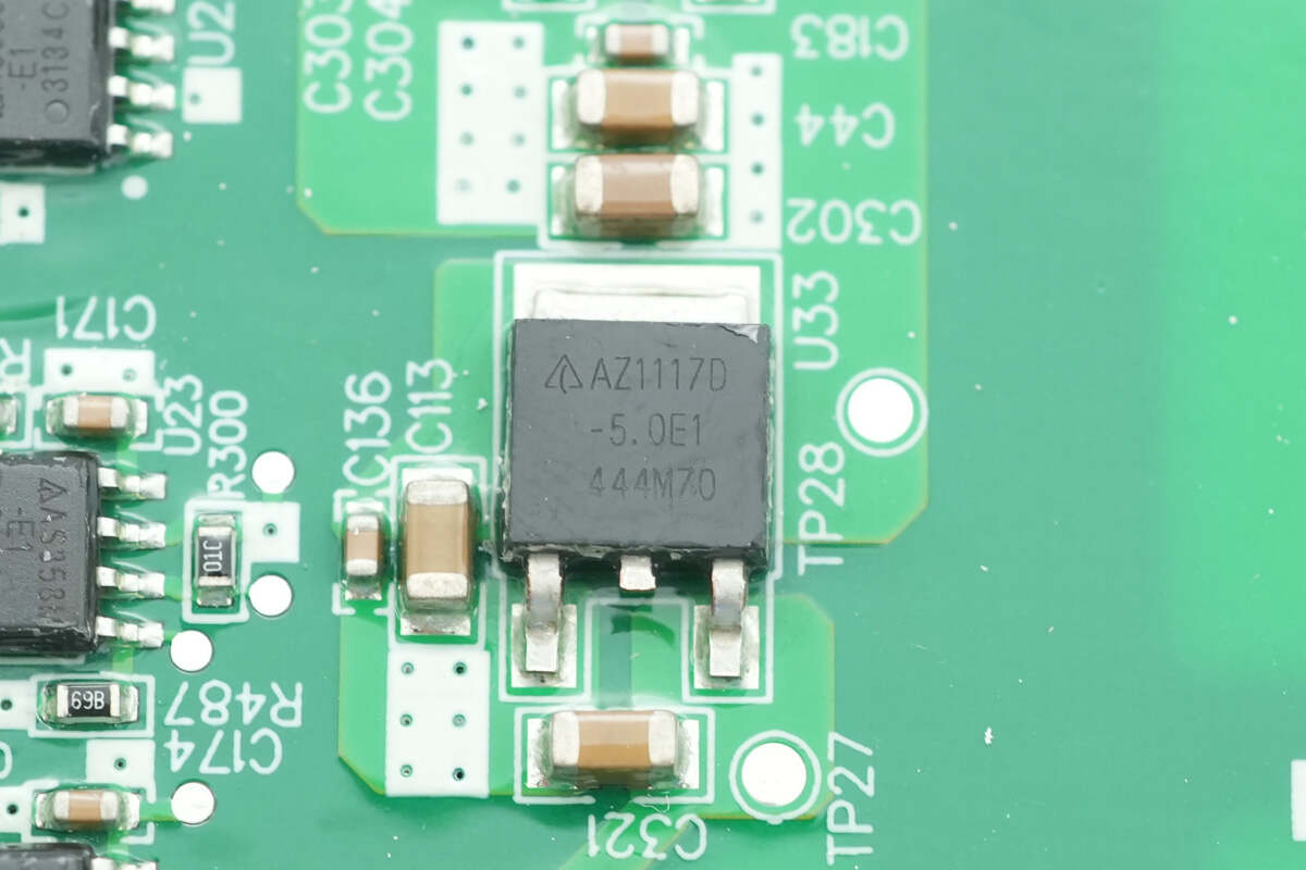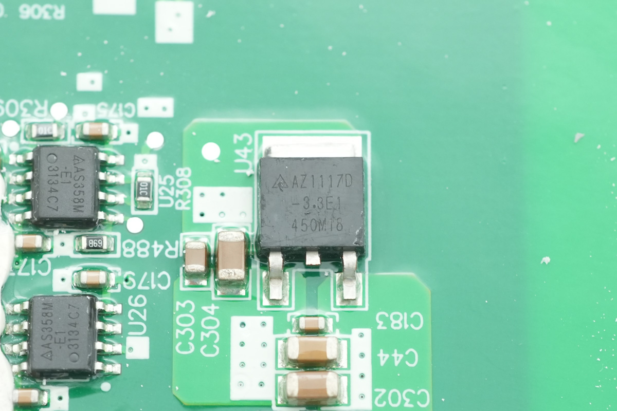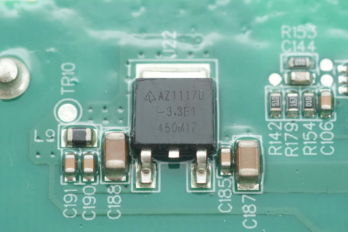 The other regulator chip is model AZ1117D-3.3TRE1, providing a 3.3 V output voltage.