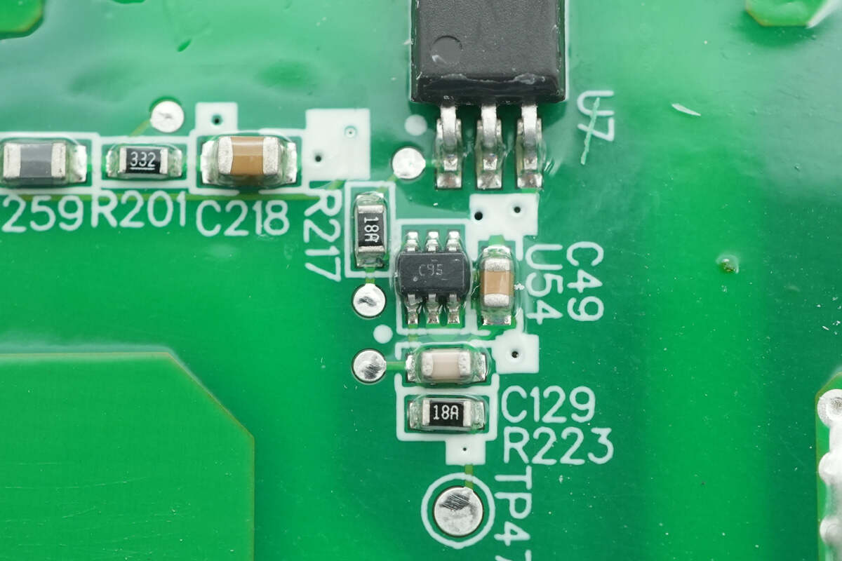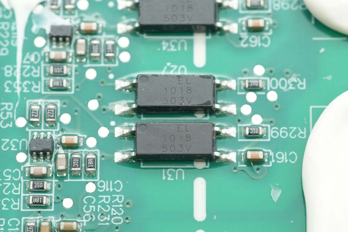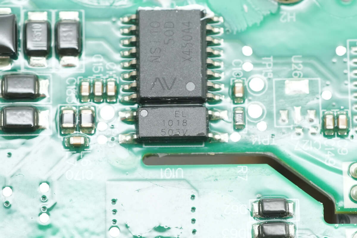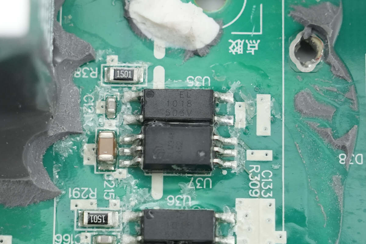 After taking it apart, we found that the PCBA module is composed of two stacked layers, consisting of a PFC module and an LLC module, connected via wiring. Both the PFC controller and the LLC controller use the TI TMS320F28035PAG, with input current detection performed through AMC1200B isolation chips. The PFC MOSFETs are Sanrise SRC60R022FBS, paired with Sanan SDS120J40H3 SiC diodes for rectification, and isolated via NOVOSENSE NSi6801BD drivers.