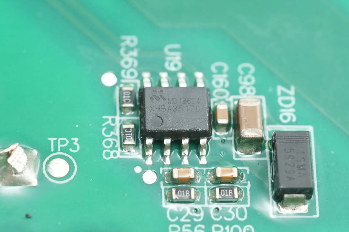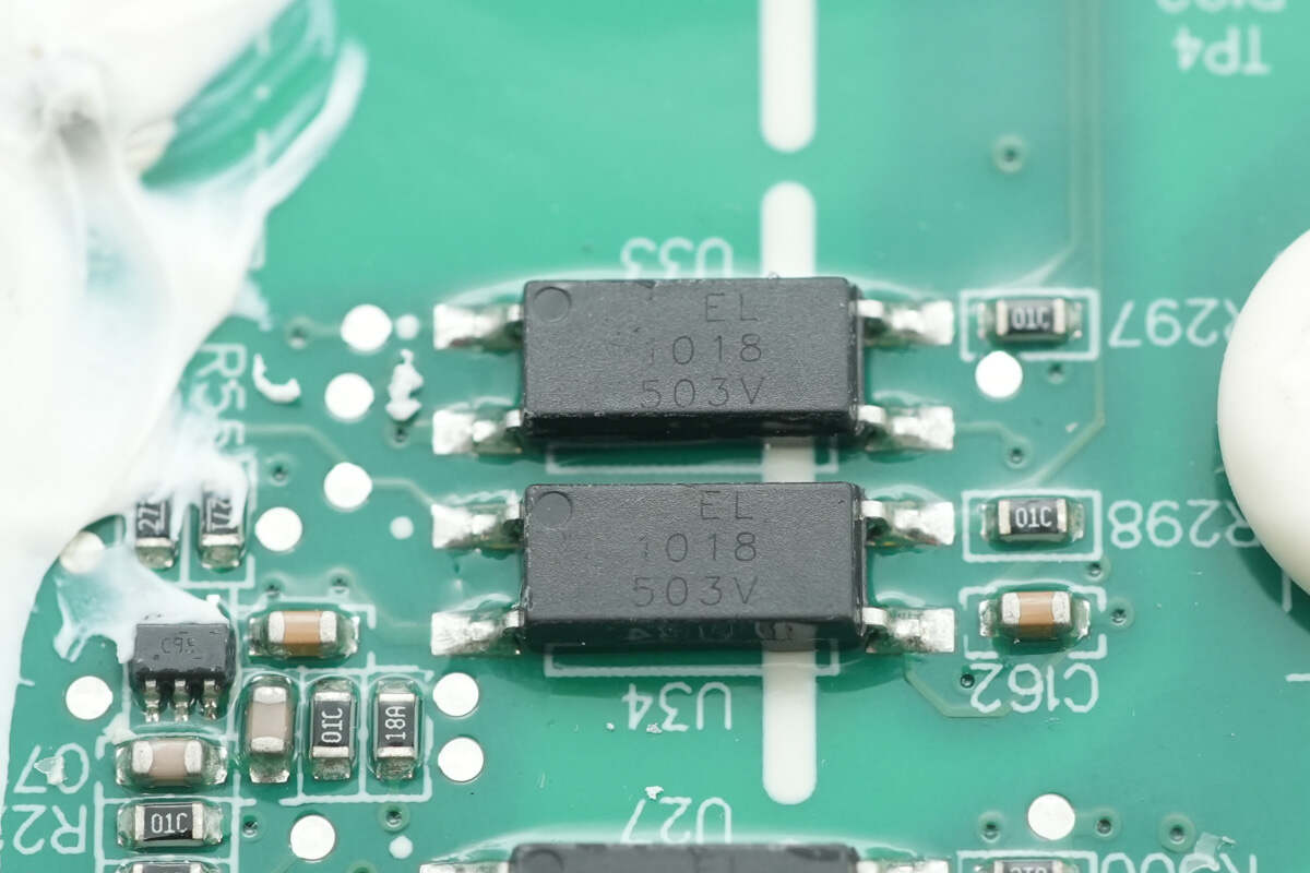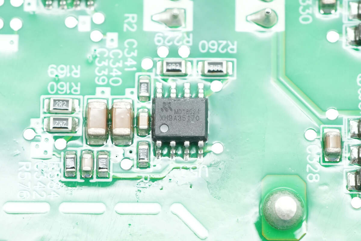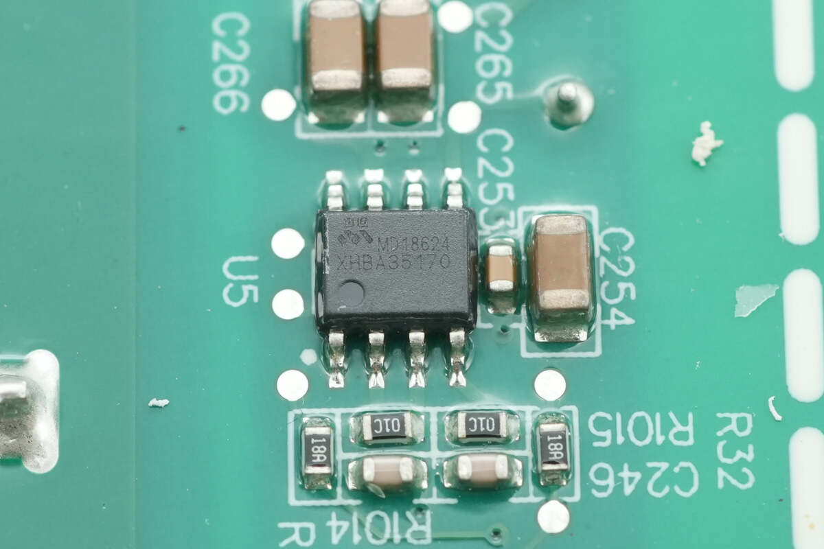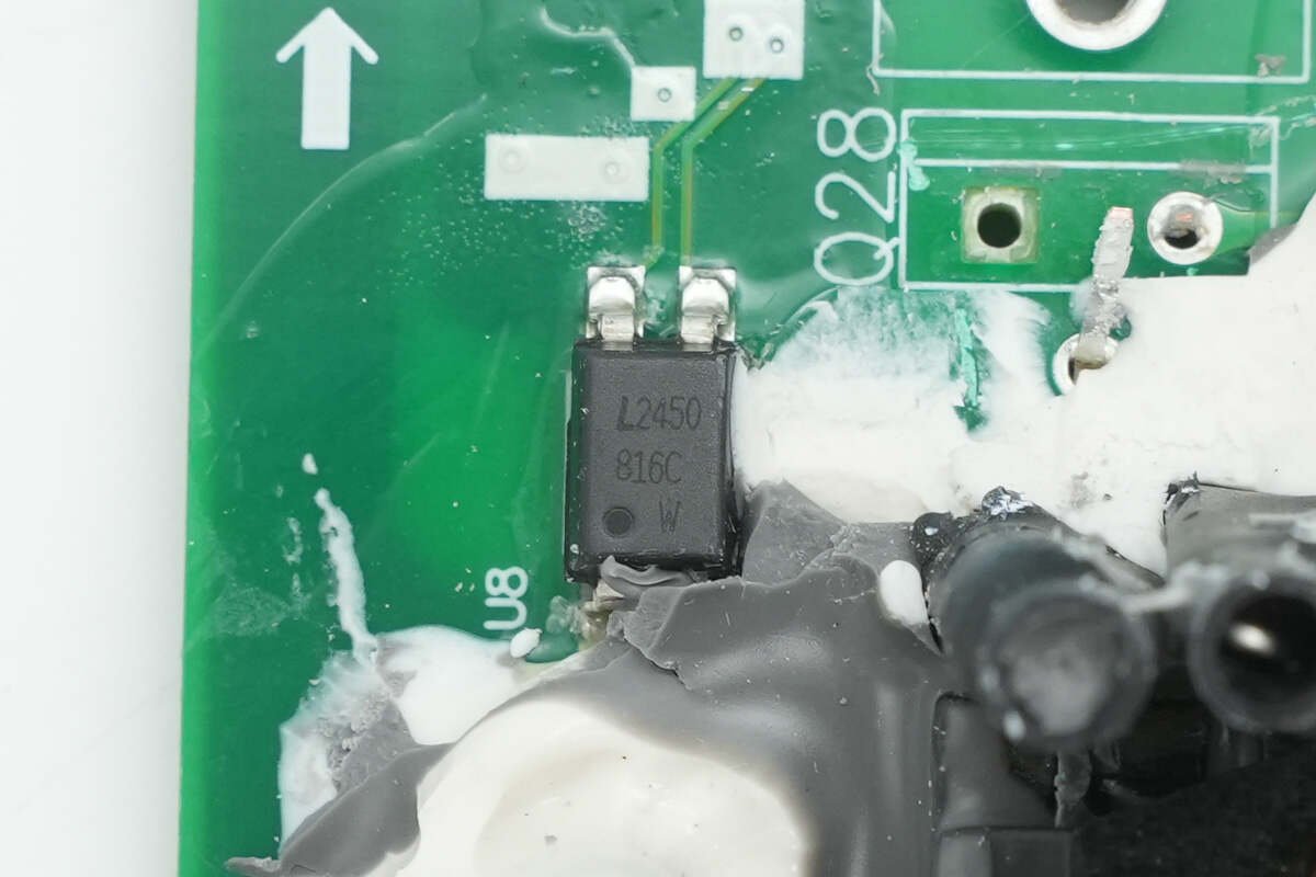 After taking it apart, we found that the PCBA module is composed of two stacked layers, consisting of a PFC module and an LLC module, connected via wiring. Both the PFC controller and the LLC controller use the TI TMS320F28035PAG, with input current detection performed through AMC1200B isolation chips. The PFC MOSFETs are Sanrise SRC60R022FBS, paired with Sanan SDS120J40H3 SiC diodes for rectification, and isolated via NOVOSENSE NSi6801BD drivers.