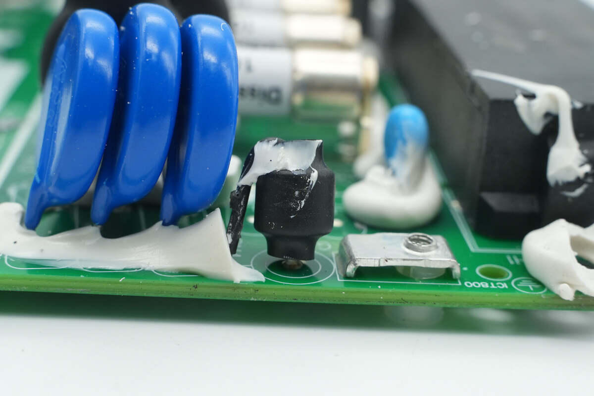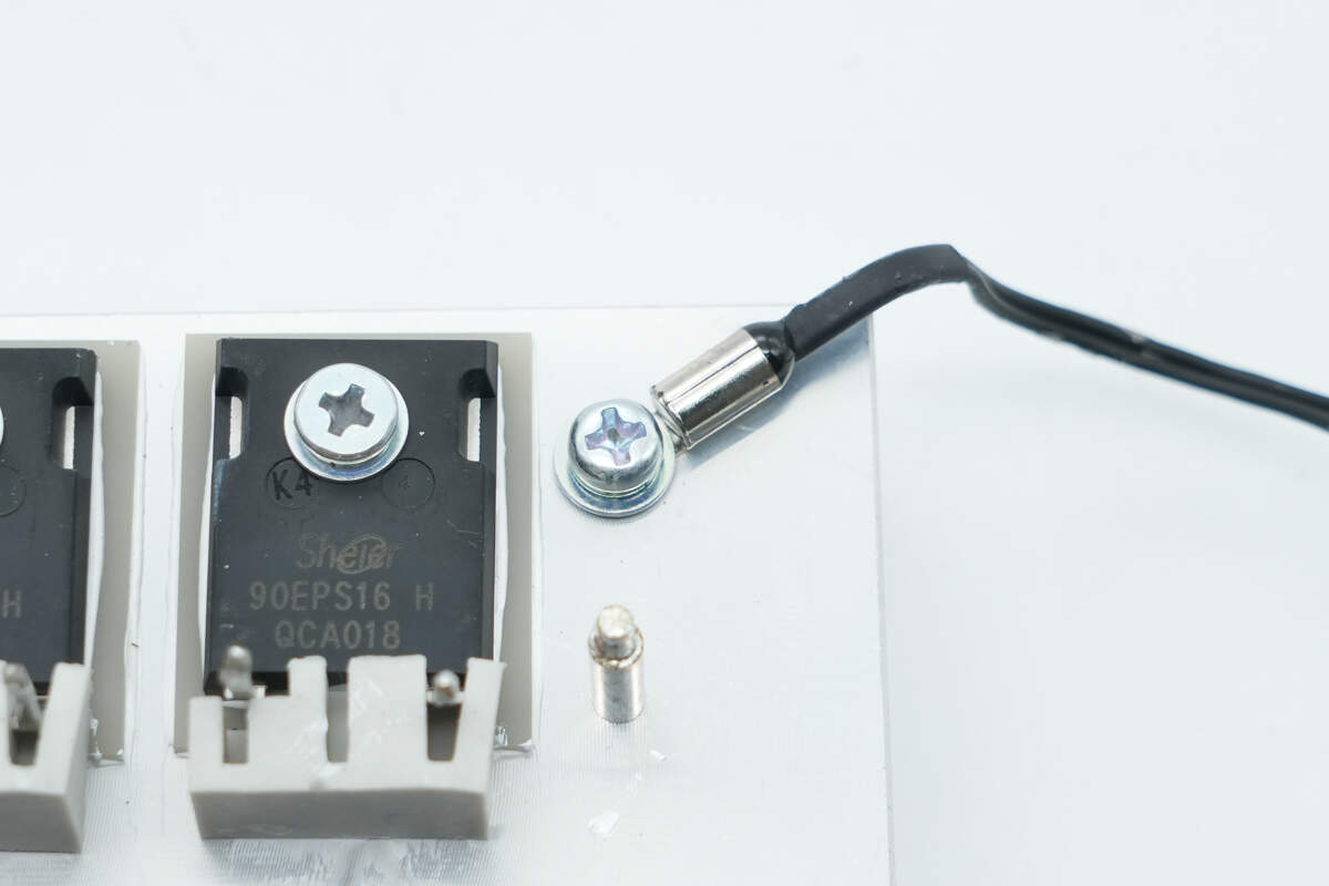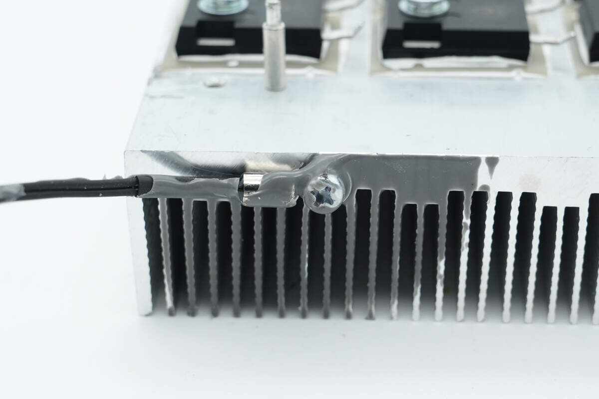 Close-up of a thermistor used to detect the temperature of the heatsink.