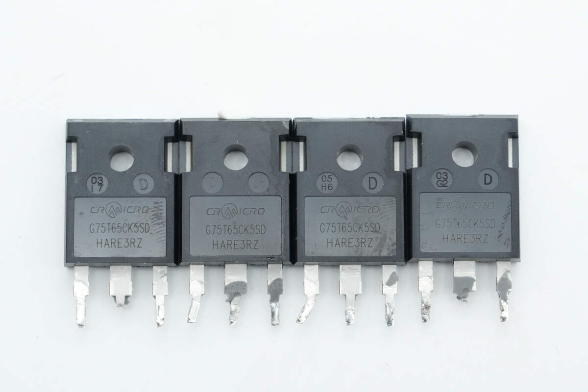 Four IGBTs are from CR MICRO, model CRG75T65CK5SD. They are rated at 650 V and 75 A, and come in a TO-247 package.