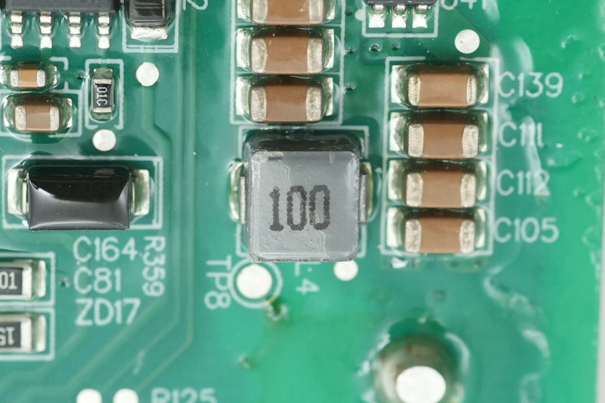 Close-up of the 10μH buck inductor used in conjunction with the device.
