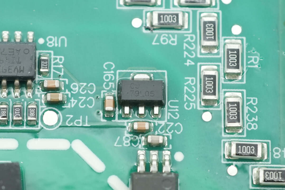 The regulator chip is from JSCJ, model CJ79L05. It supports an input voltage of –30 V, provides a –5 V output, and delivers up to 100 mA of output current. The device comes in an SOT-89-3L package.