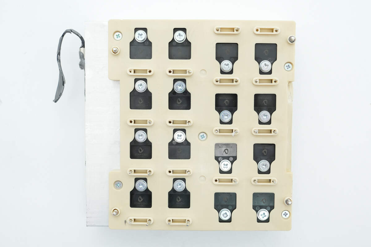 Sixteen rectifiers are mounted on the heatsink and secured with a plastic sealing bracket fastened by screws.