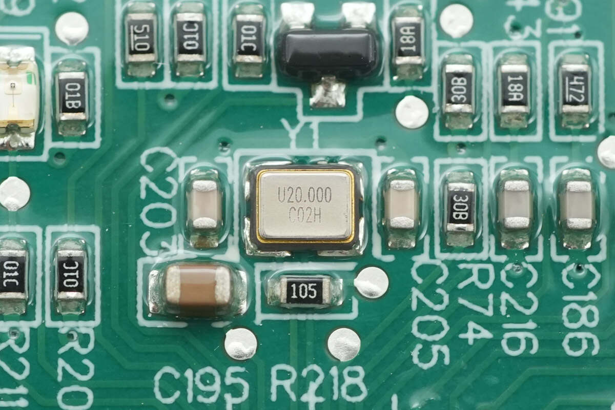 The PFC controller is paired with an external 20 MHz crystal oscillator.