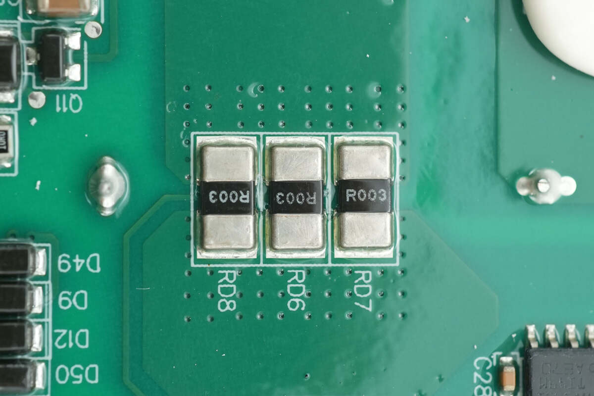 Three 3 mΩ current-sense resistors are connected in parallel for input current detection.