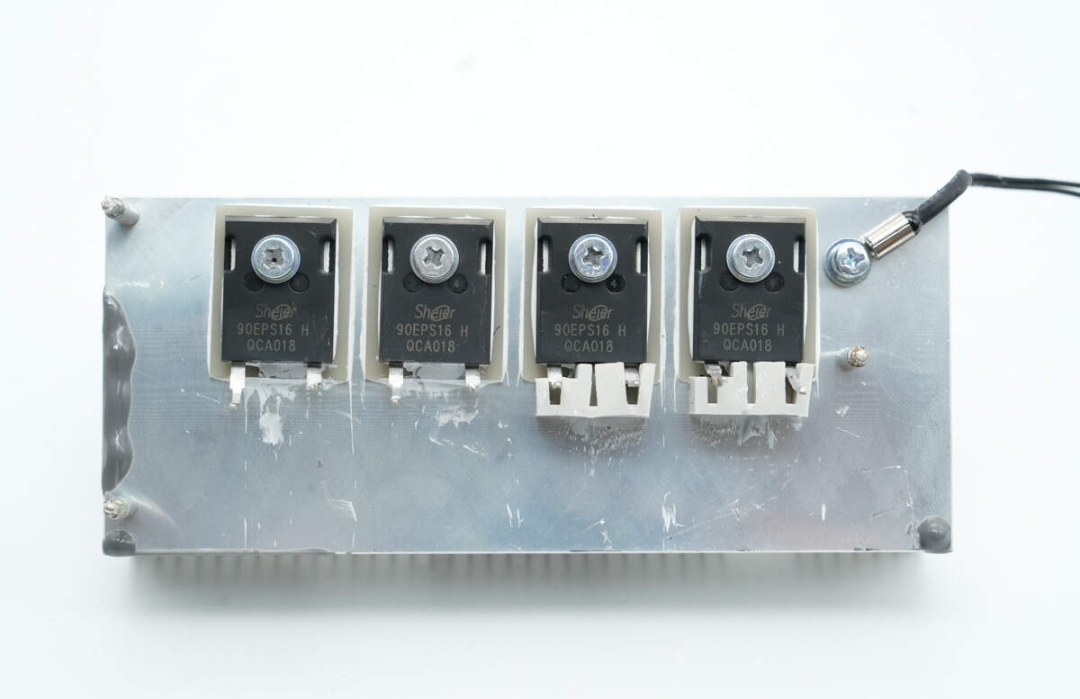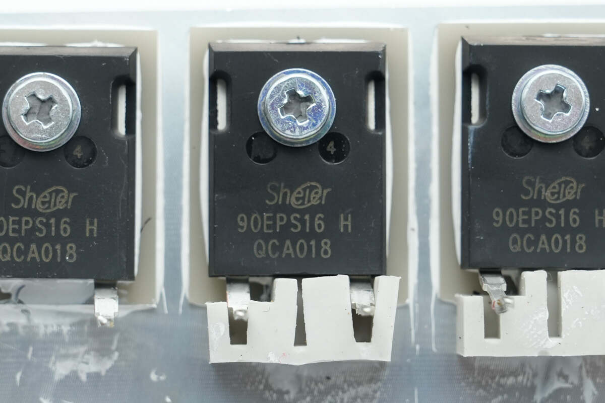 The reverse-protection diodes are from Sheier, model 90EPS16 H. They are rated at 1600 V and 90 A, and come in a TO-247 package.