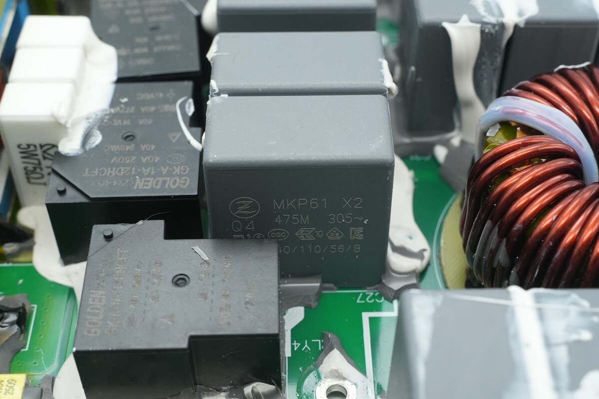 The safety X2 capacitor is from Zhongxing and has a specification of 4.7 μF.