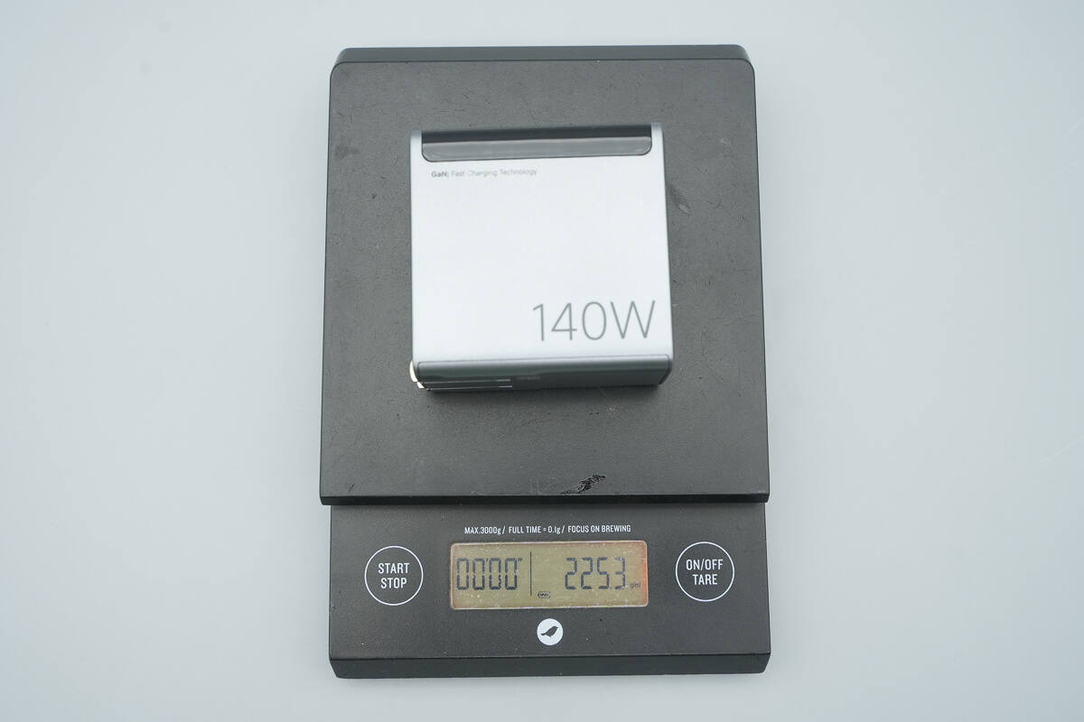 The other side is marked with “140W” and “GaN: Fast Charging Technology.”