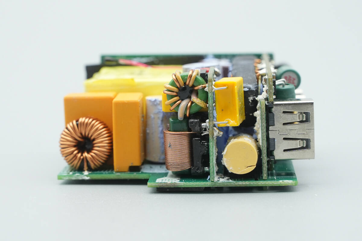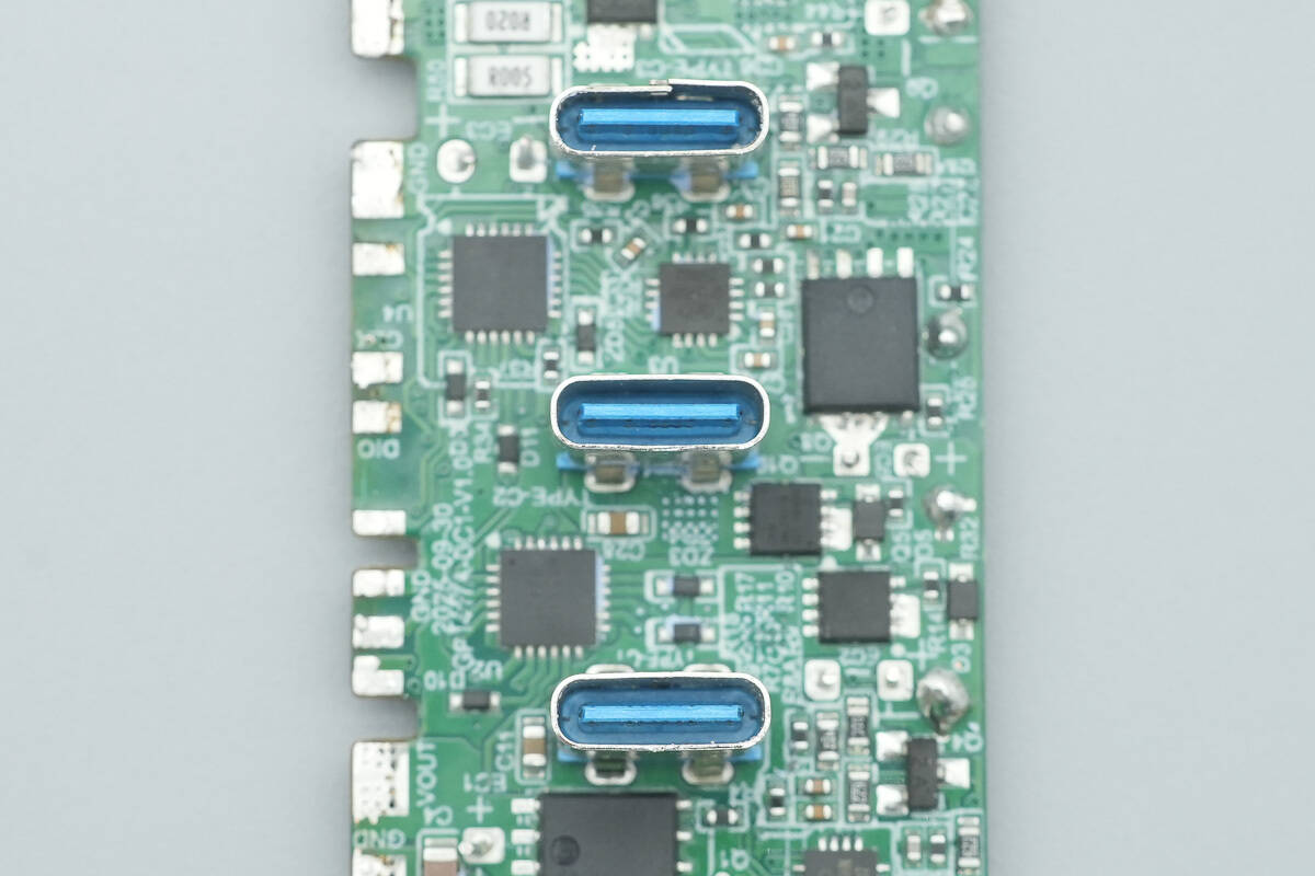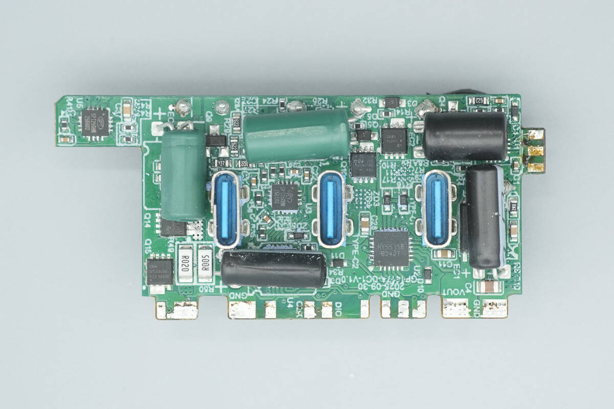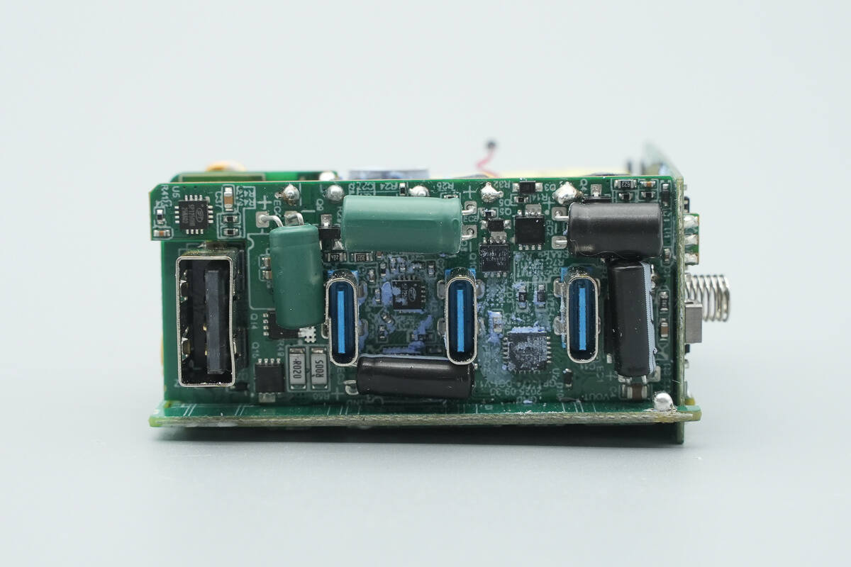 The USB-C ports are soldered onto the output PCB, while the USB-A port is mounted on a separate PCB.