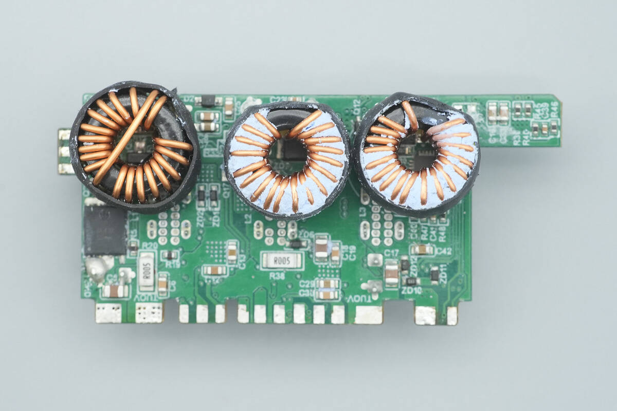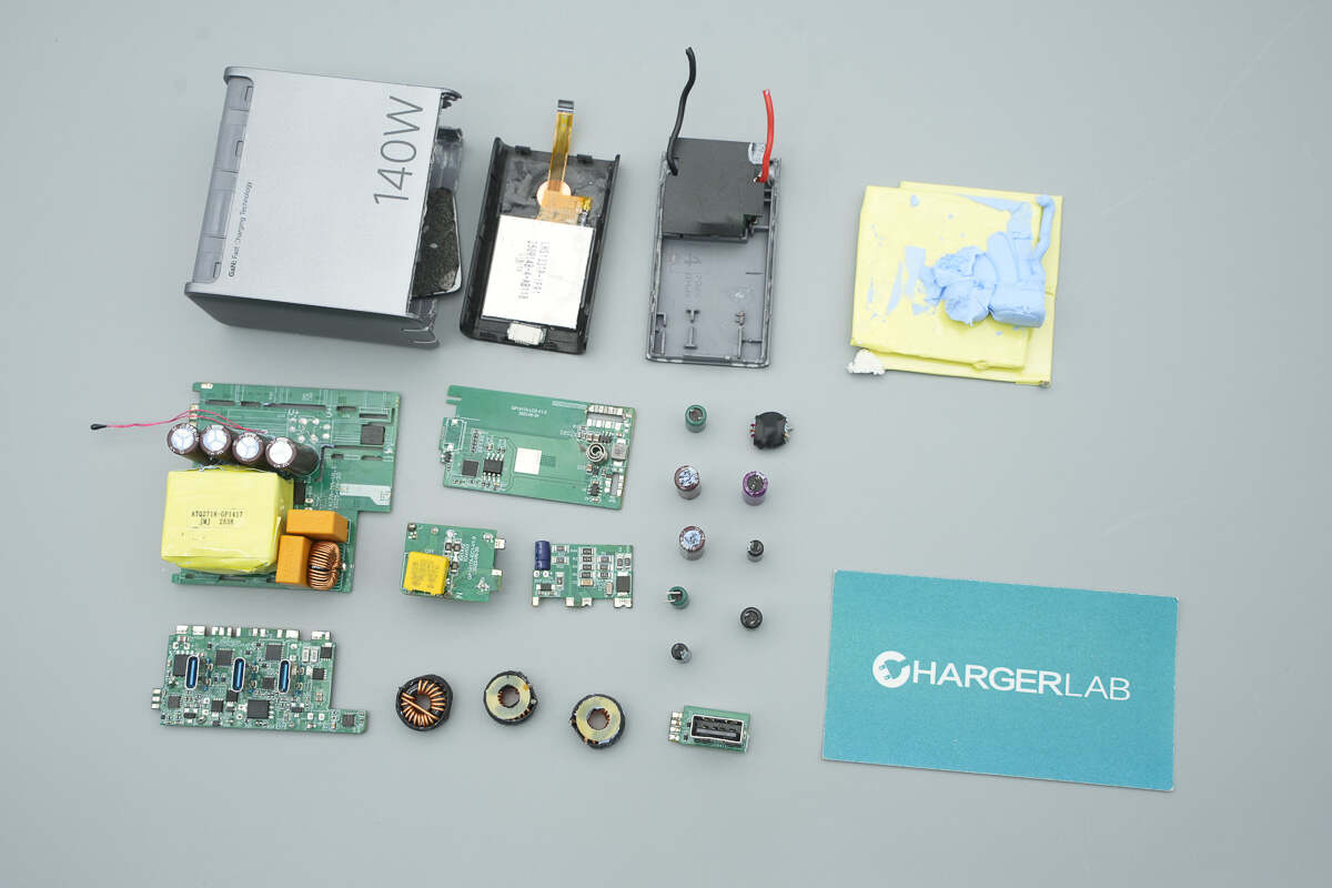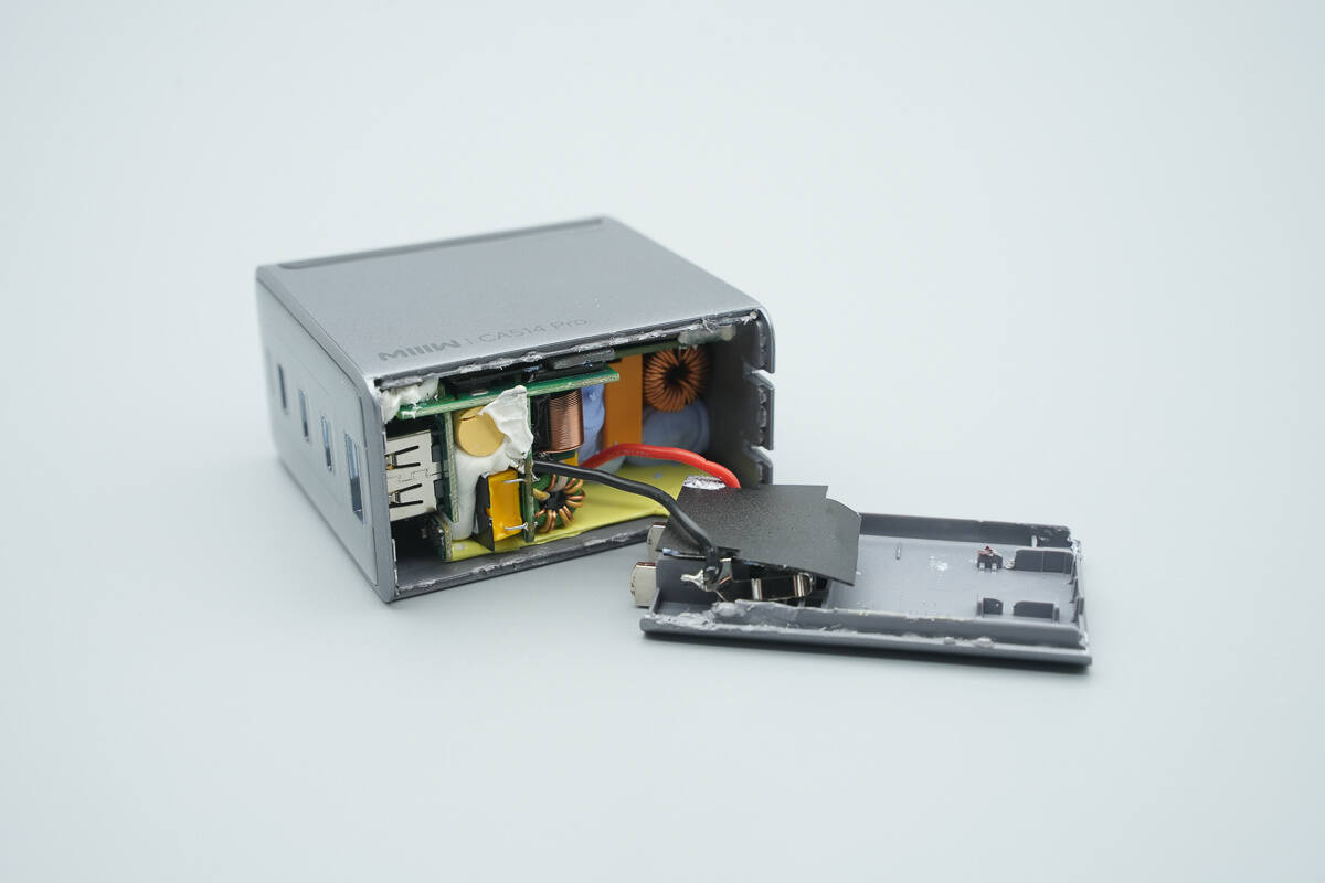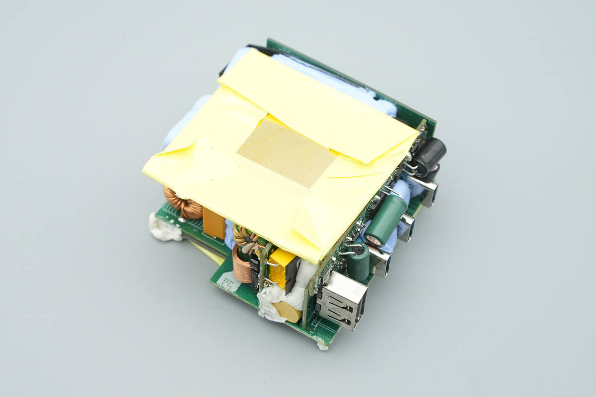 The USB-C ports are soldered onto the output PCB, while the USB-A port is mounted on a separate PCB.