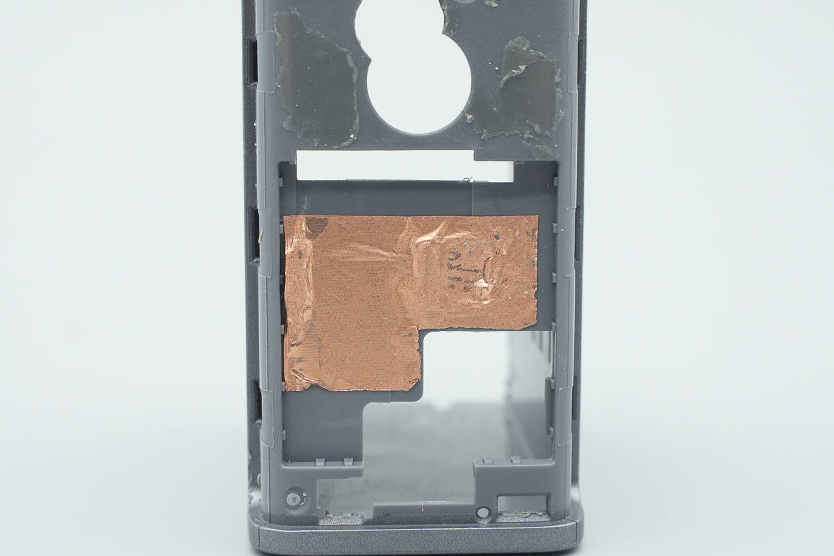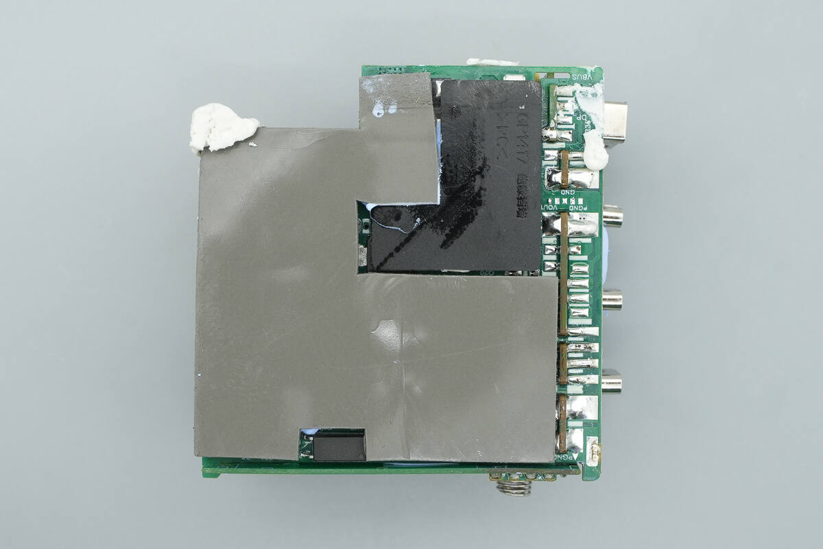 The top of the PCBA module is covered with a heatsink and wrapped with adhesive tape.