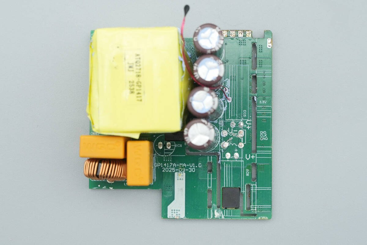 After taking it apart, we found that it uses a single-stage high-PF power design with Kiwi Instruments KP2815 and KP4060, paired with Innoscience INN700D105C GaN power device. It features three independent secondary DC-DC buck circuits, all using the Si-Power SP1250HN buck solution. Output control is handled by HYASiC HY5515E and HY5324 protocol chips.
