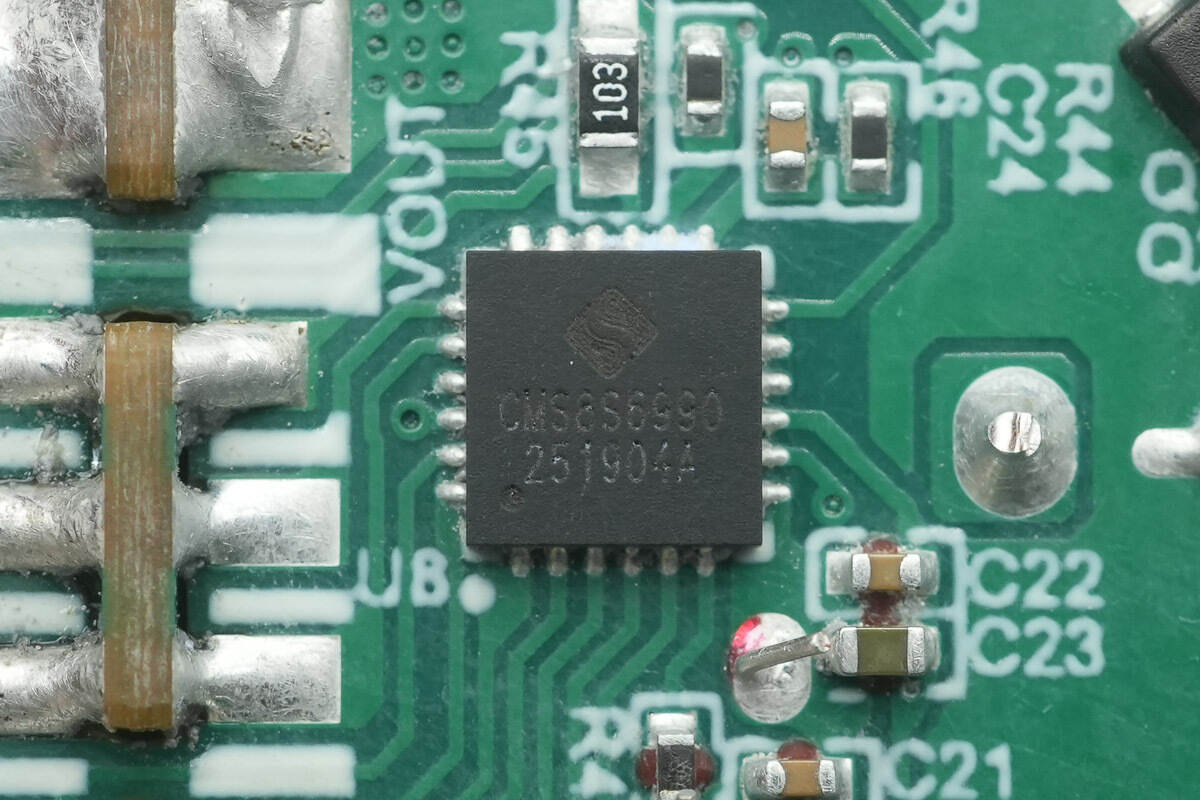 The MCU used for charging control is from Cmsemicon, model CMS8S6990. It is an enhanced 1T8051 Flash MCU, packaged in a QFN24.
