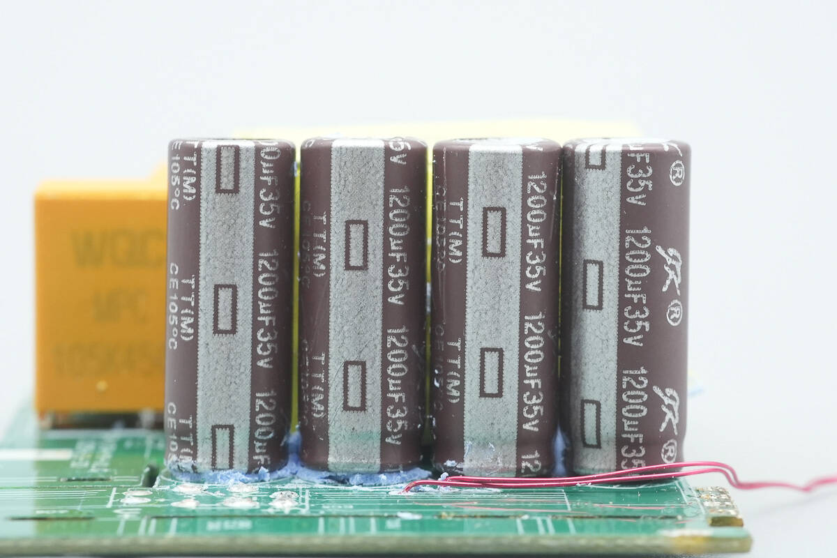 The four capacitors are also from JK, each rated at 35 V, 1200 μF.