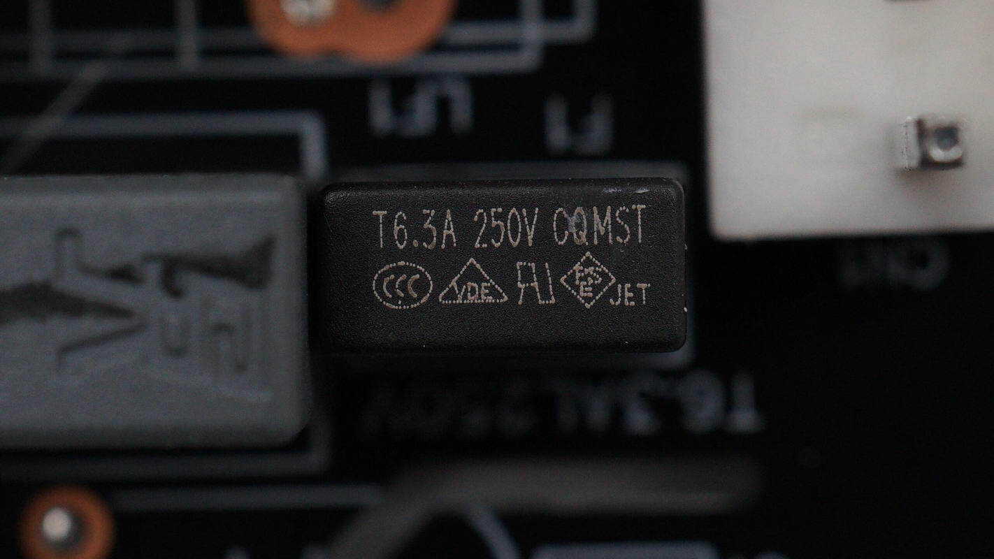 The input fuse is from CONQUER, with a rating of 6.3 A, 250 V.