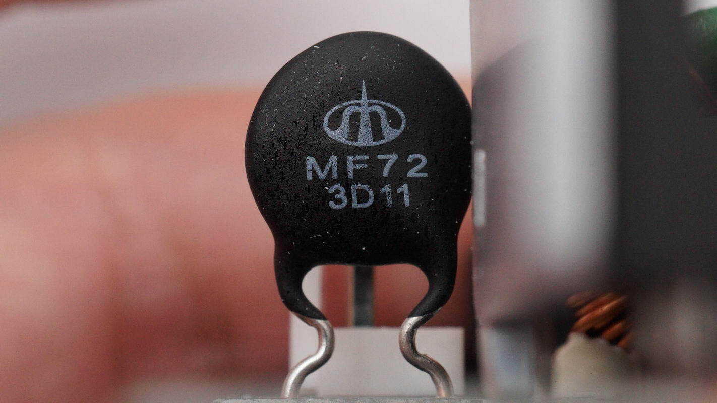The NTC thermistor is from Shiheng, MF72 series, marked 3D11, and is used to suppress inrush current during power-up.