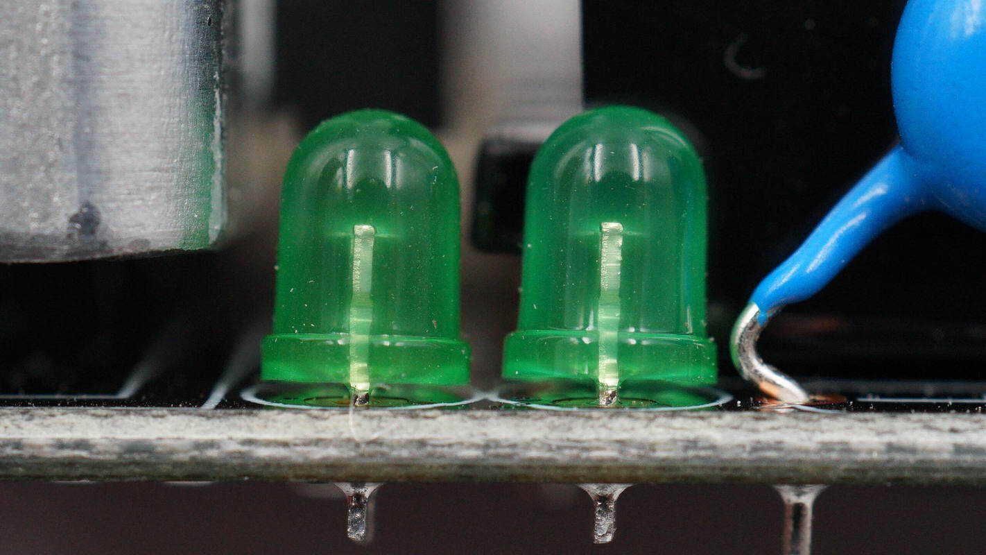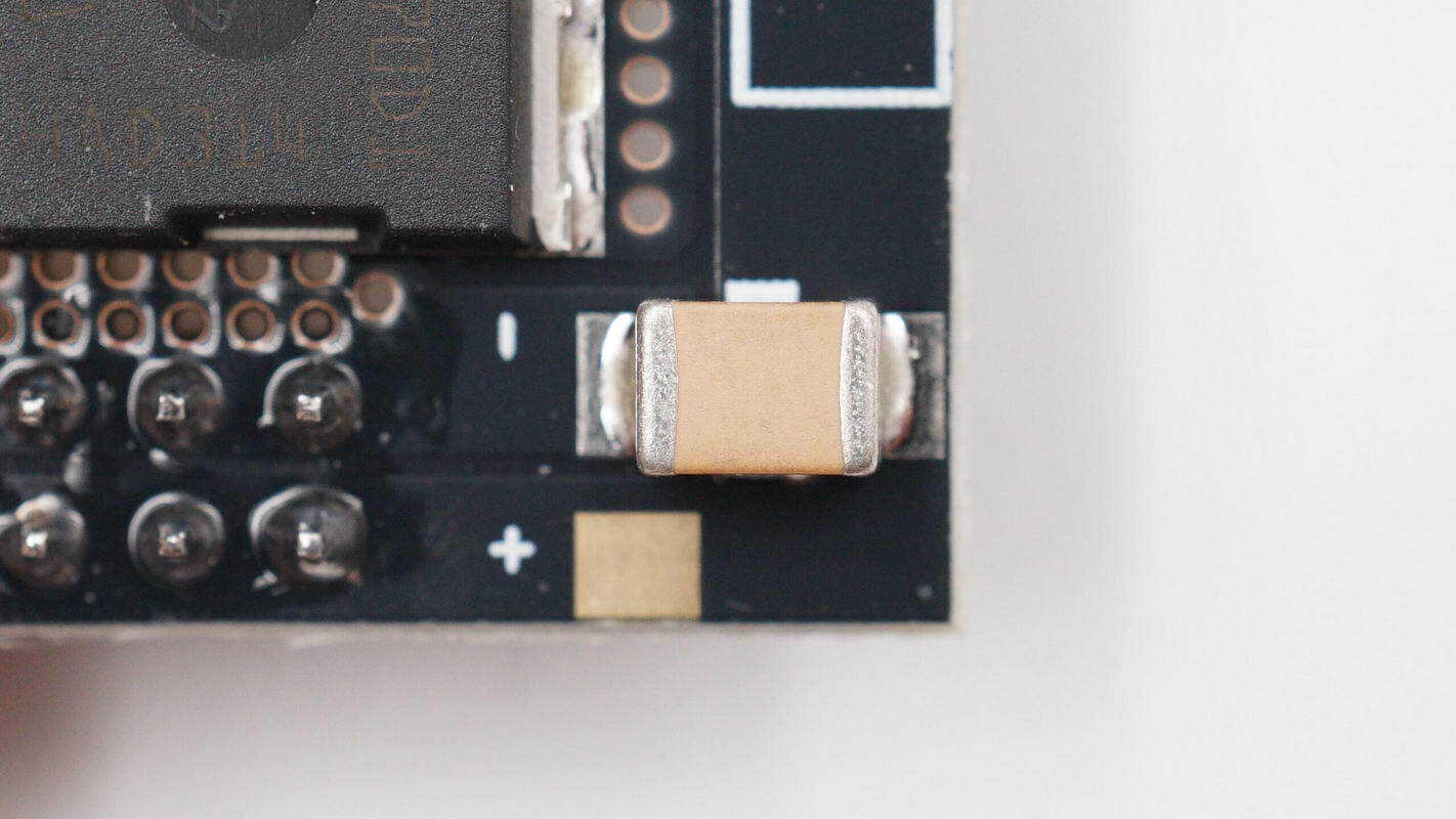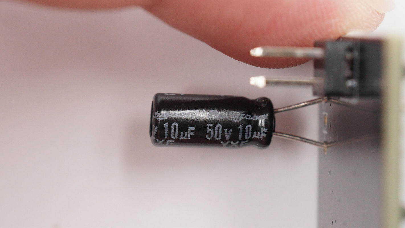 The rear side is soldered with header pins and equipped with an electrolytic capacitor.