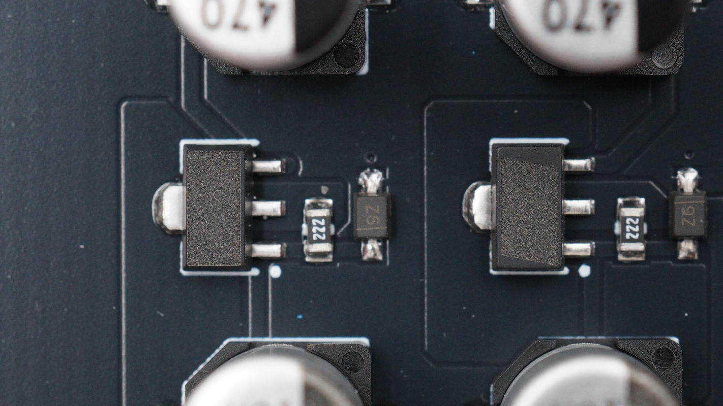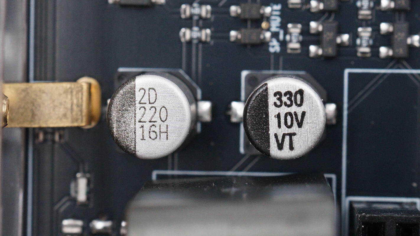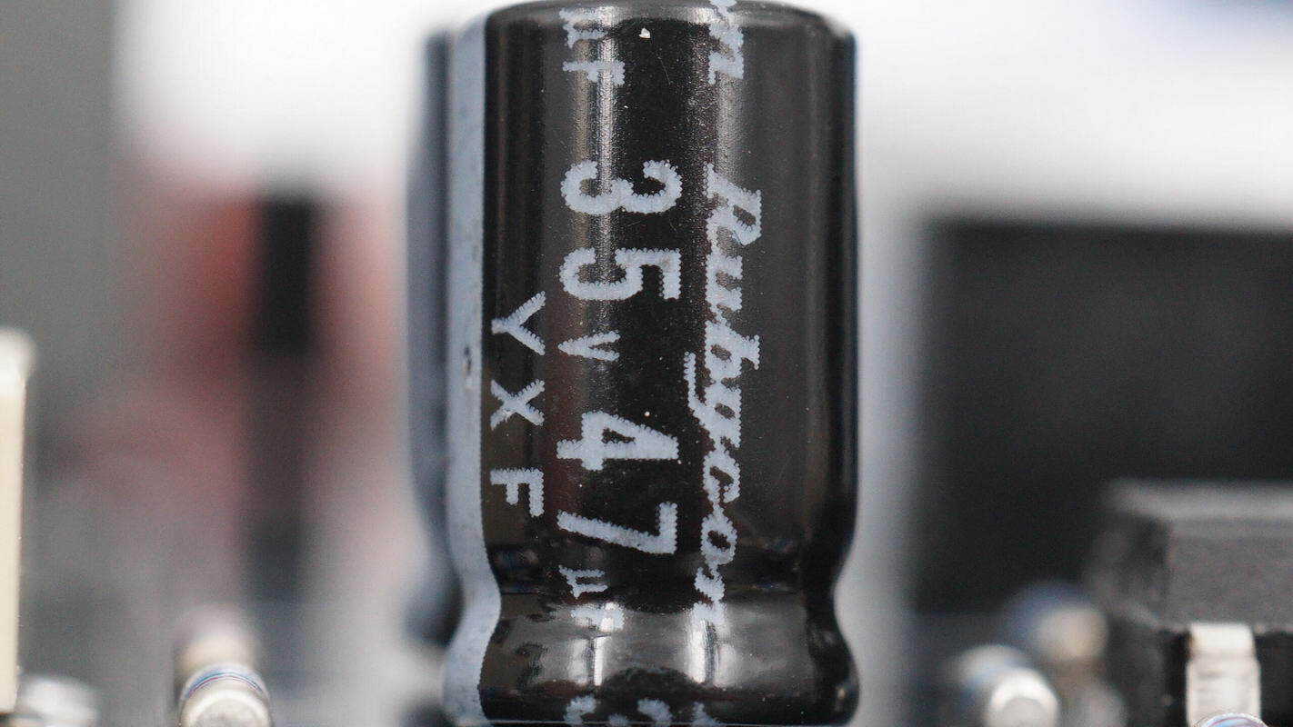 The electrolytic capacitors are from Rubycon, rated 47 μF, 35 V, with a total of four units.