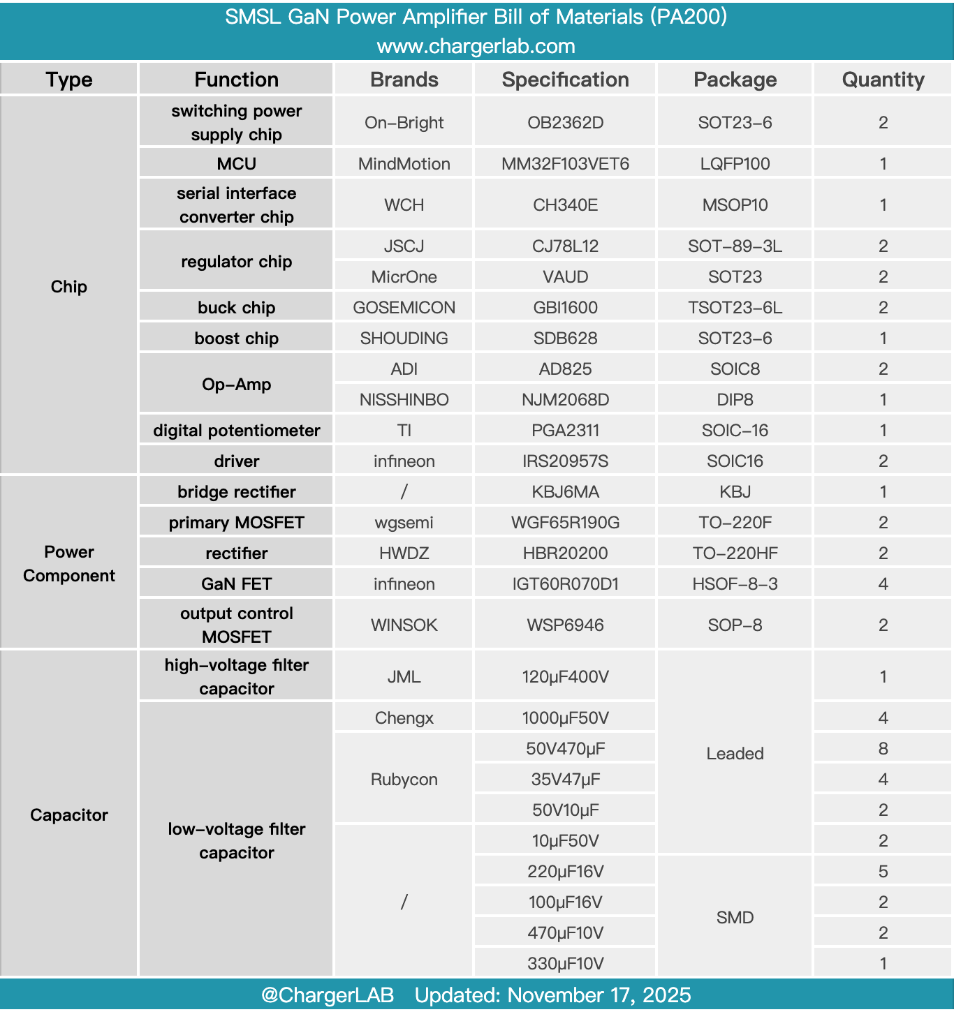 Here is the component list of the SMSL GaN Power Amplifier for your convenience.